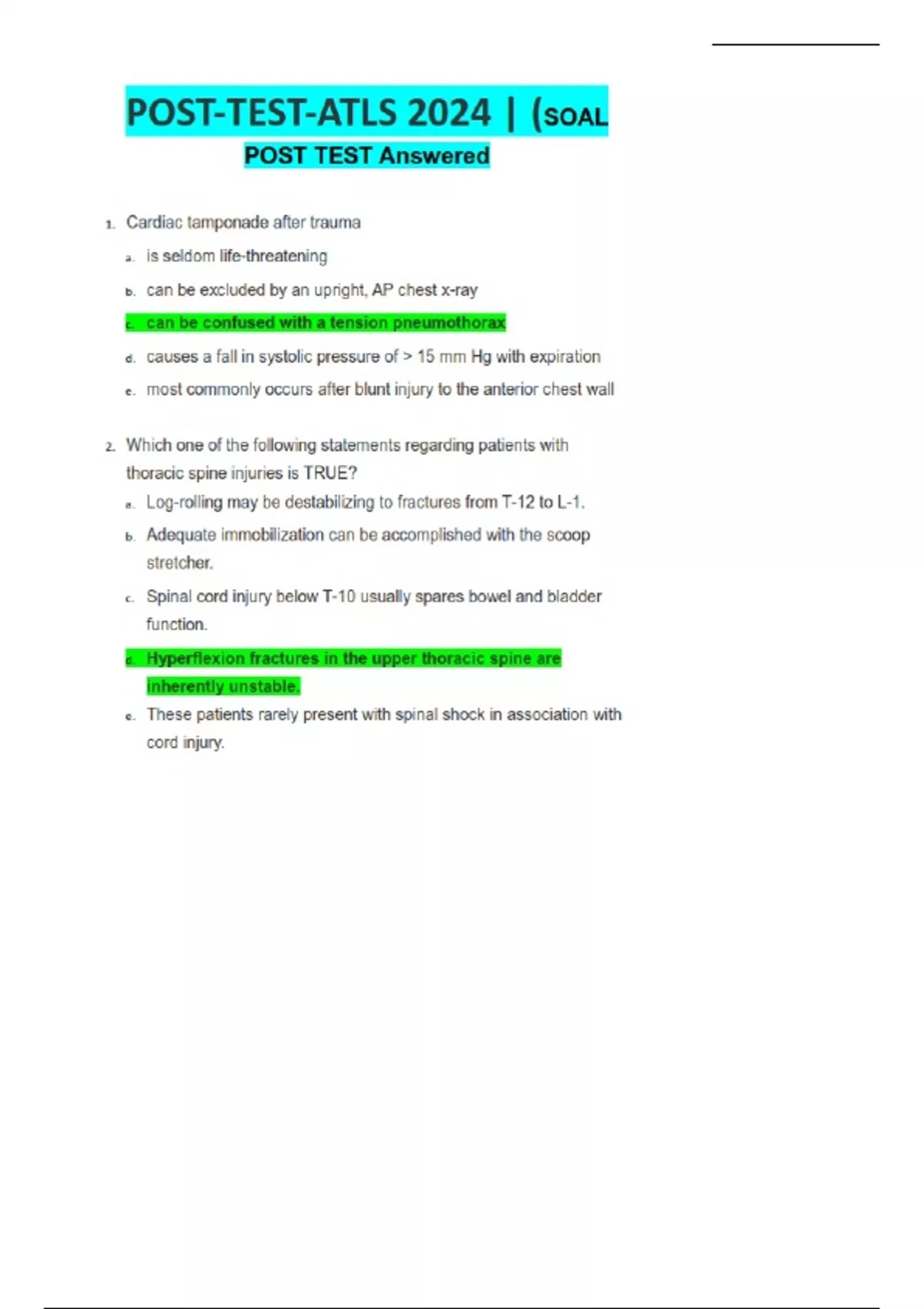 POST TEST ATLS 2023| 2024 With Correct and Verified ANSWERS (SOAL POST TEST).