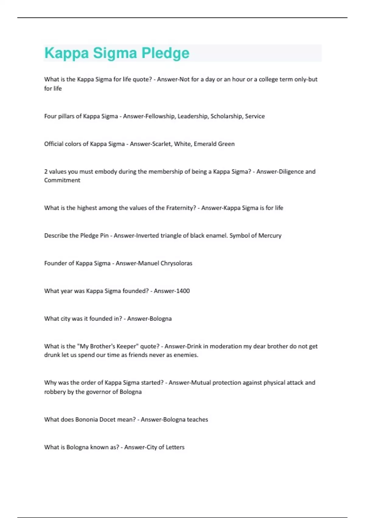 Kappa Sigma Pledge Exam Questions And Complete Answers