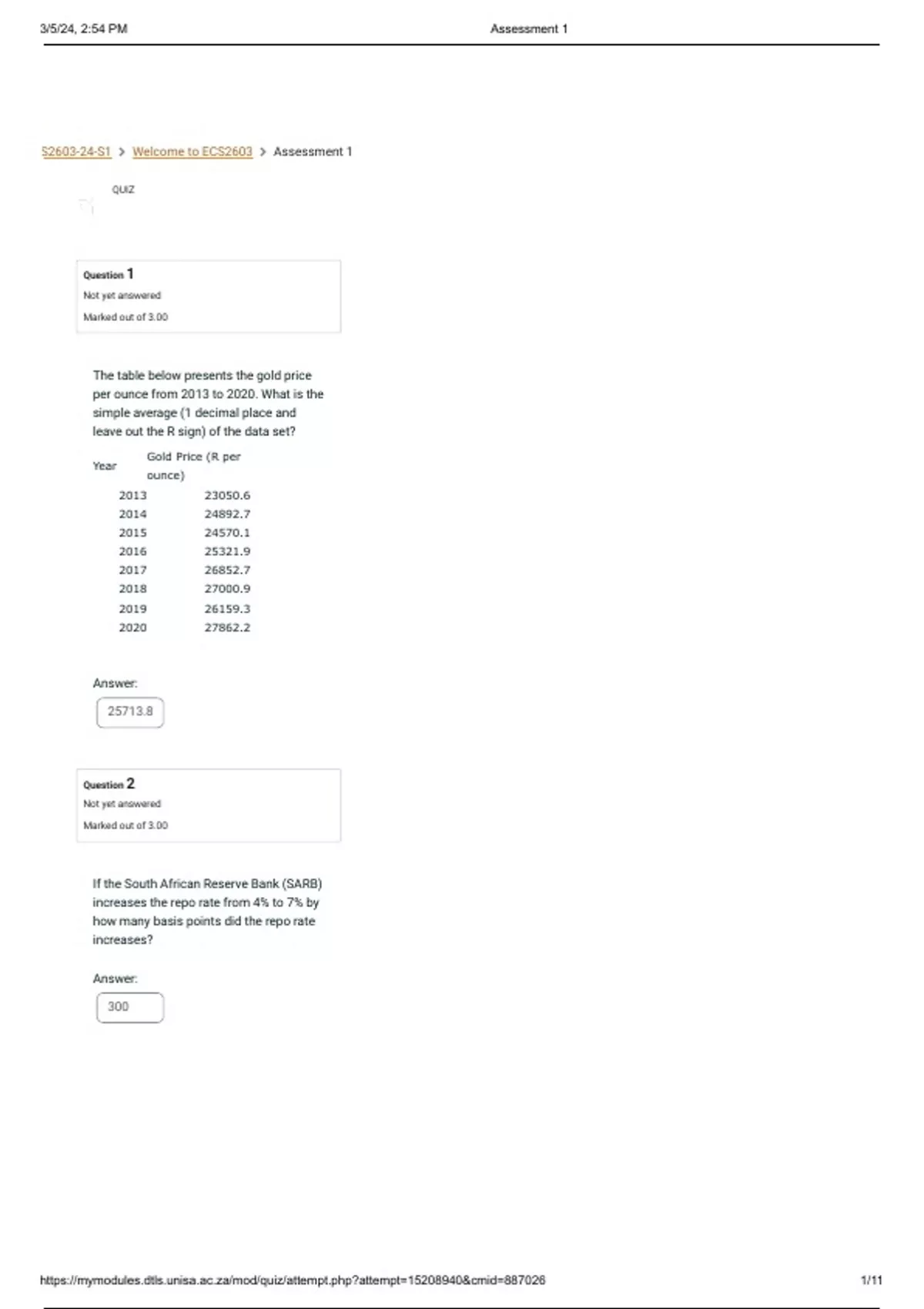 S2603-24-S1  Welcome to ECS2603  Assessment 1