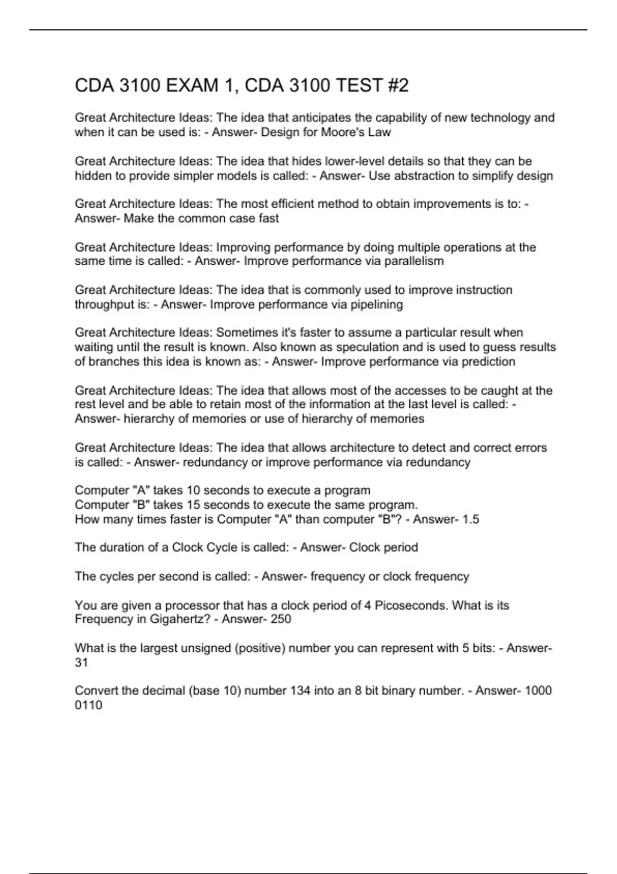 CDA 3100 EXAM 1, CDA 3100 TEST #2