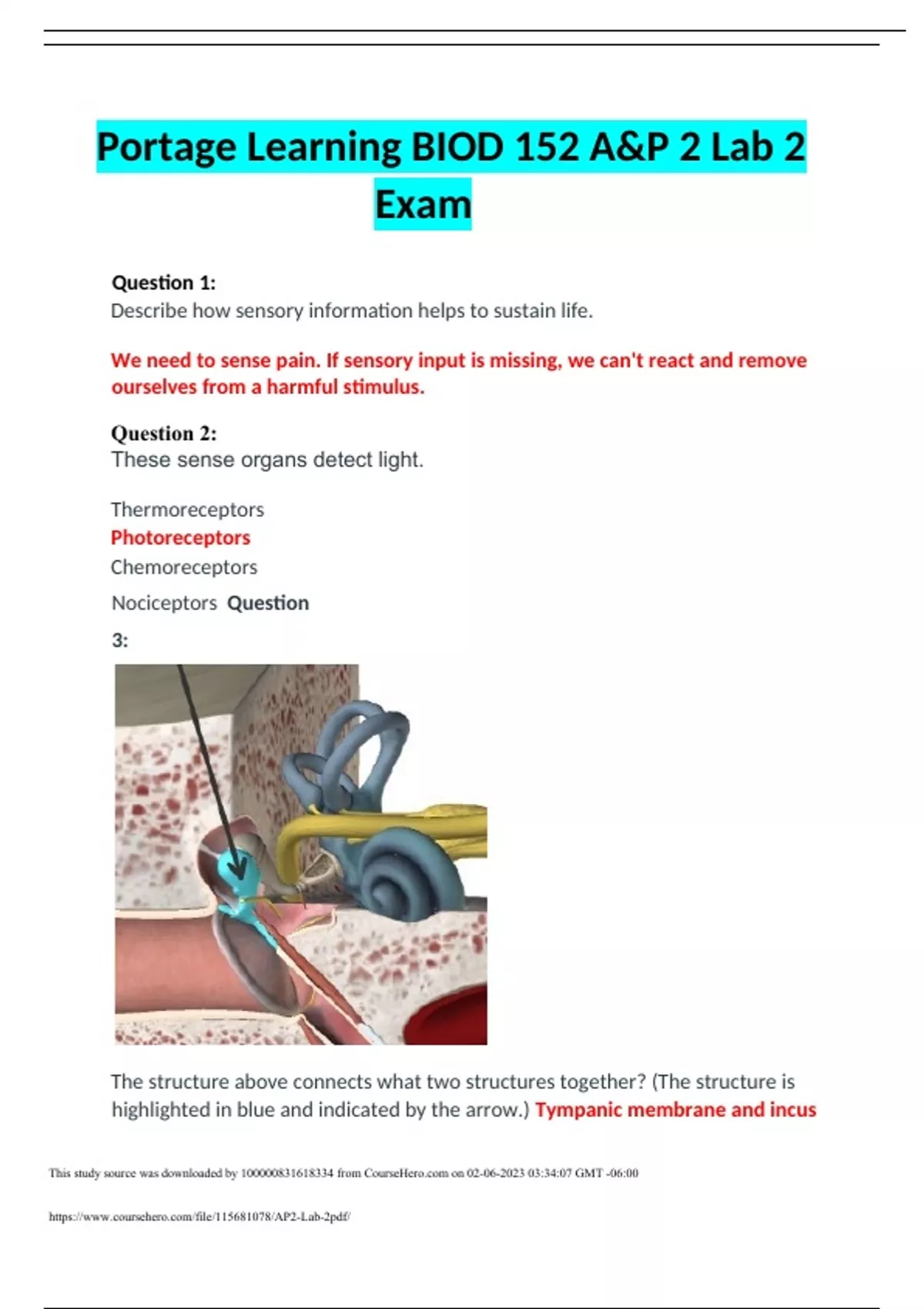 Portage Learning BIOD 152 A&P 2 Lab 2 Exam Portage Learning BIOD 152 A&P 2 Lab 2 Exam Portage Learning BIOD 152 A&P 2 Lab 2 Exam