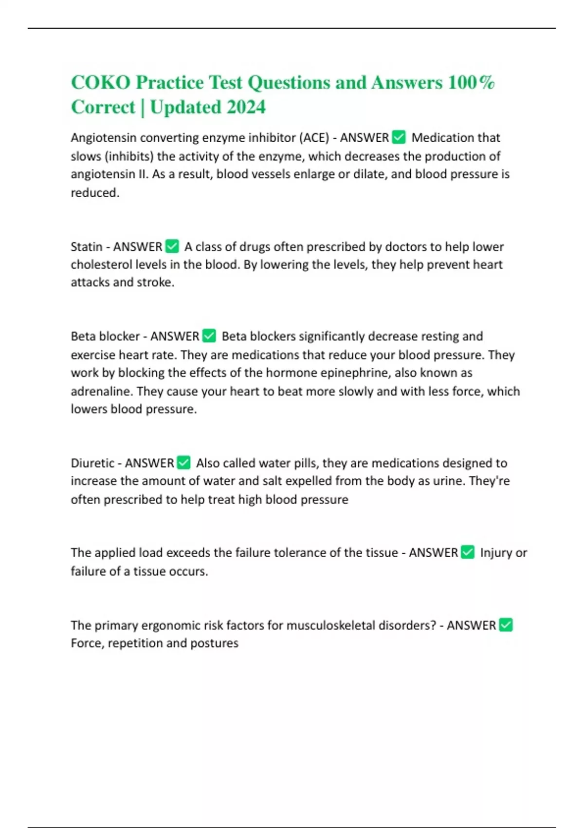 COKO Practice Test Questions and Answers 100% Correct | Updated 2024