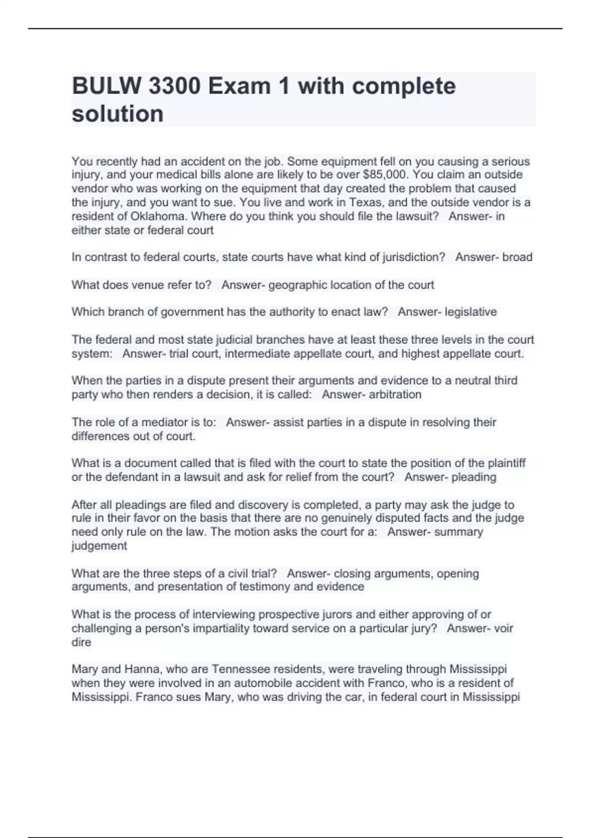 bulw 3300 exam 1 latest 2024 with complete solutio