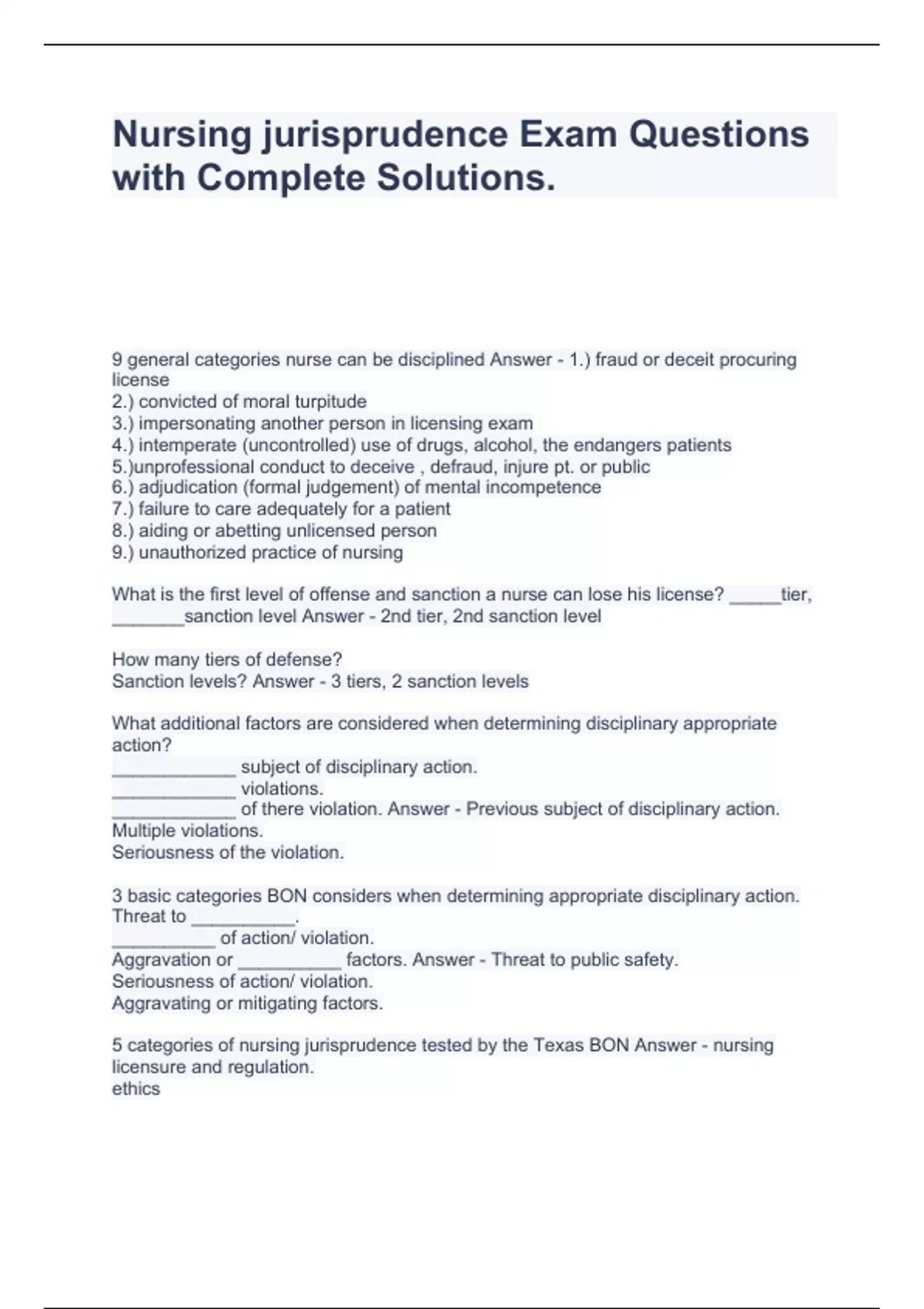 Texas Nursing Jurisprudence Exam Bundle.