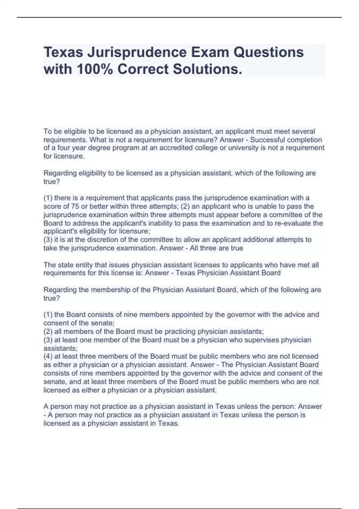 Texas Jurisprudence Exam Questions with 100% Correct Solutions