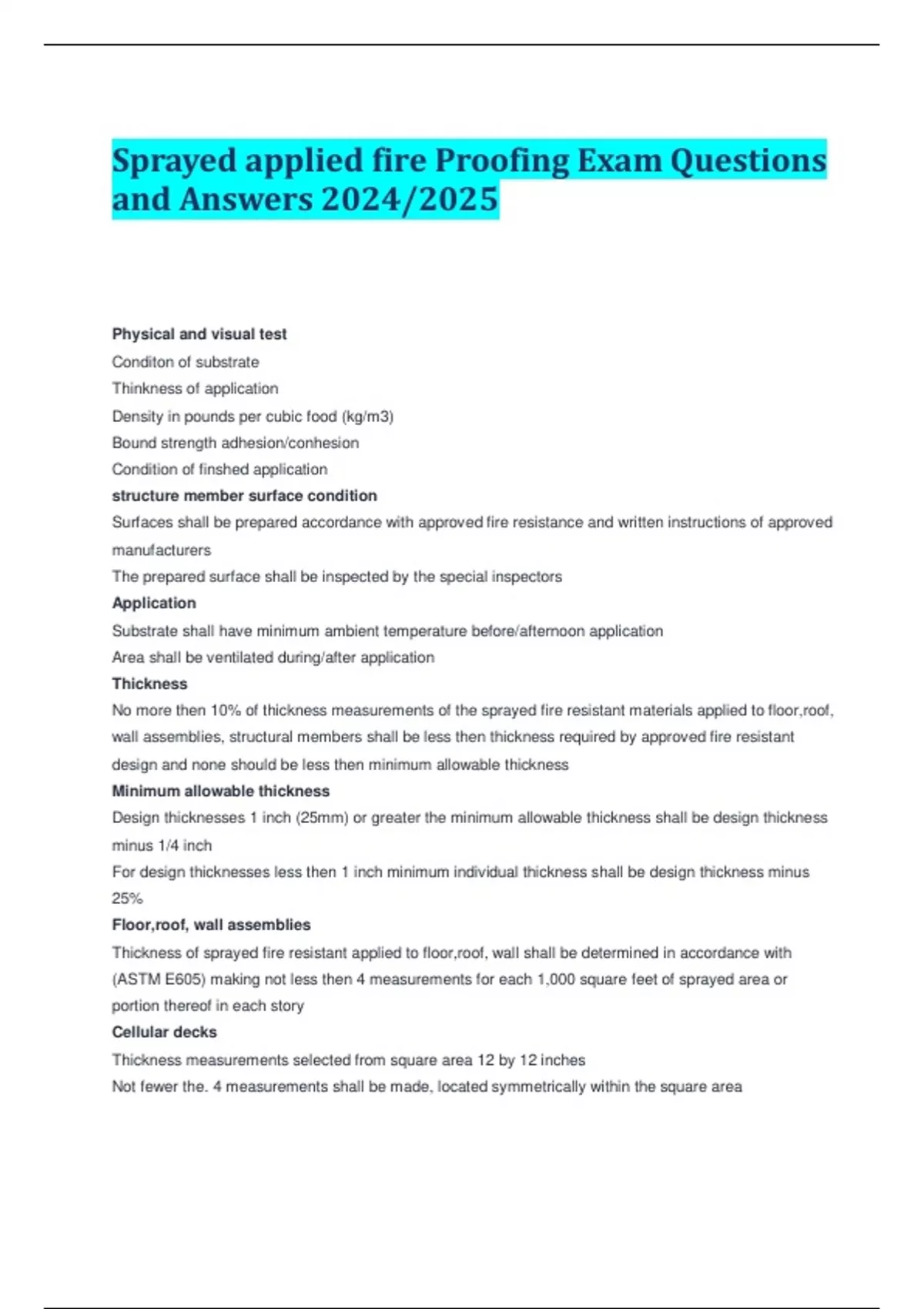 Sprayed applied fire Proofing Exam Questions and Answers 2024/2025