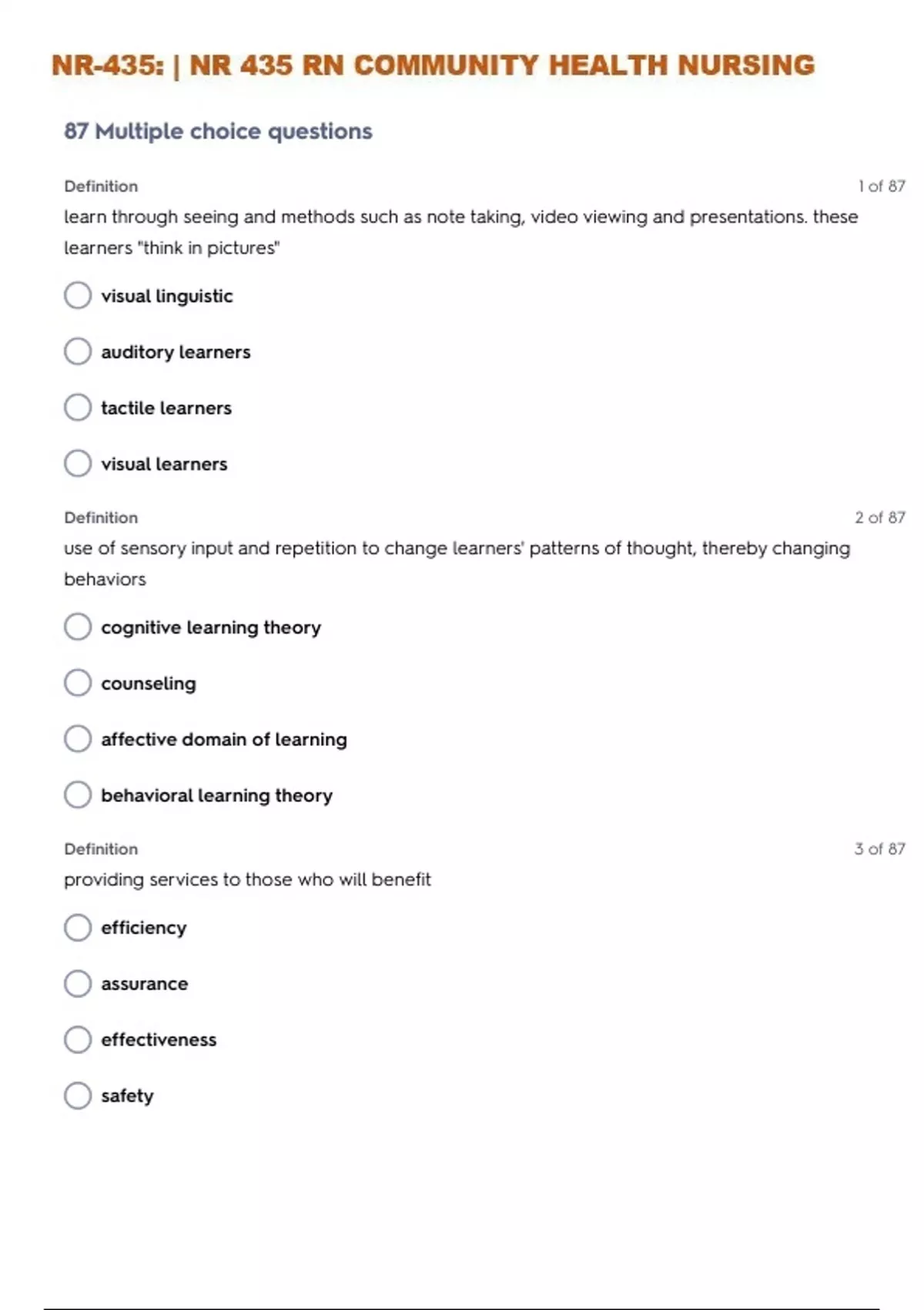 NR-435: | NR 435 RN COMMUNITY HEALTH NURSING MODULE 1 QUESTIONS WITH 100% CORRECT ANSWERS| GRADED A+