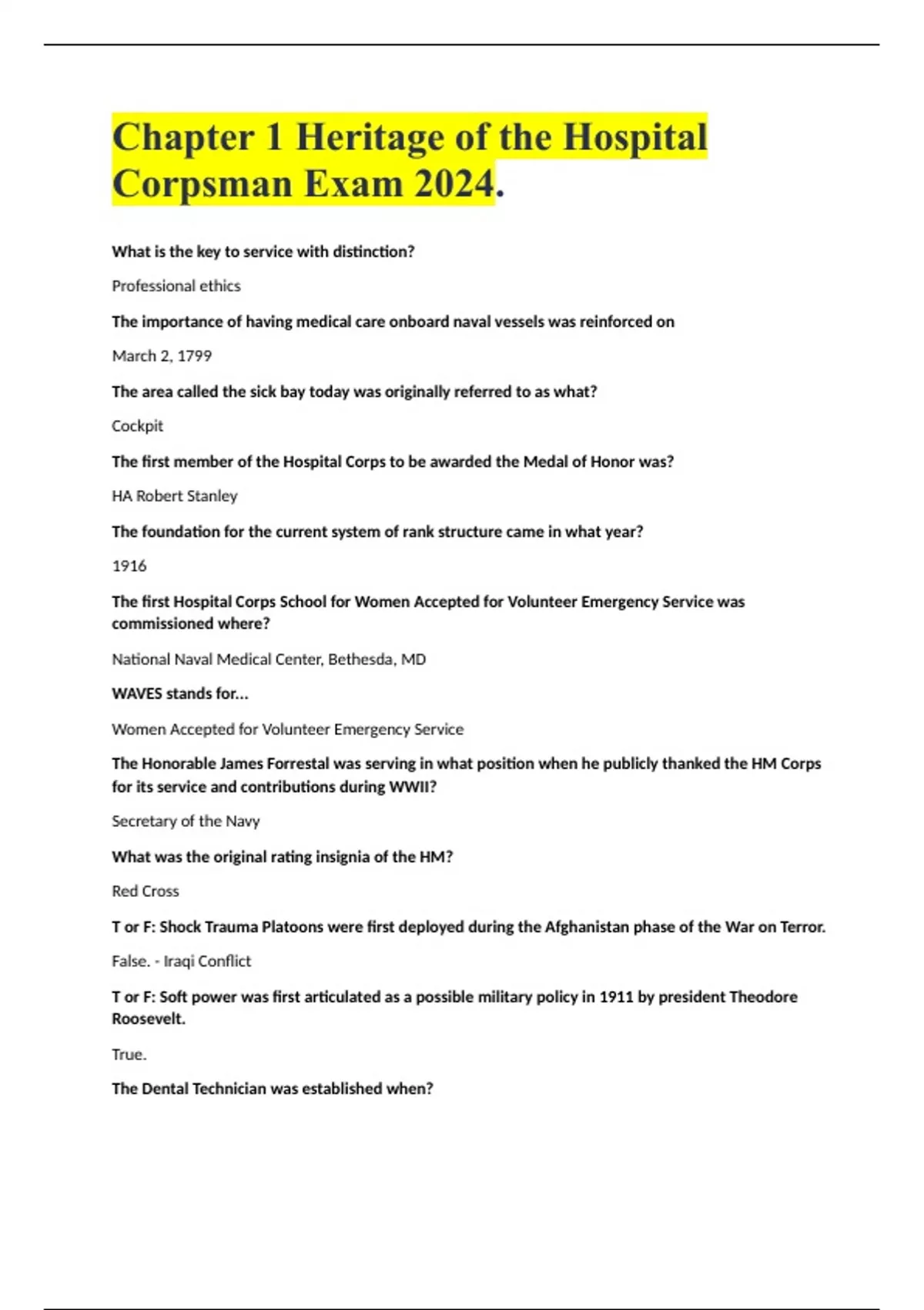 Chapter 1 Heritage of the Hospital Corpsman Exam 2024.