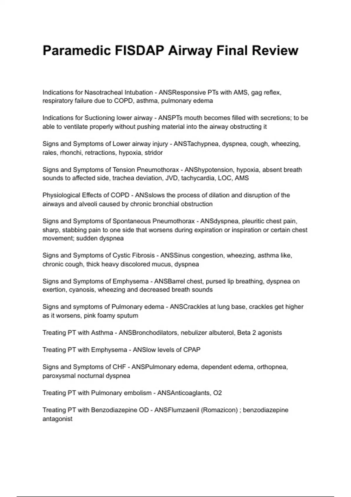 Paramedic FISDAP Airway Final Review 2024/2025 A+ score assured
