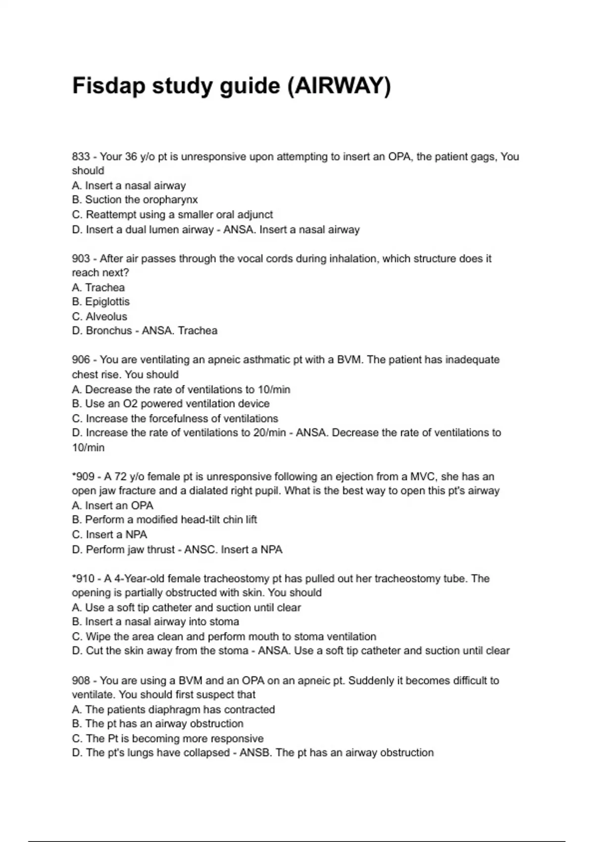 Fisdap study guide (AIRWAY) 2024/2025 A+ score assured