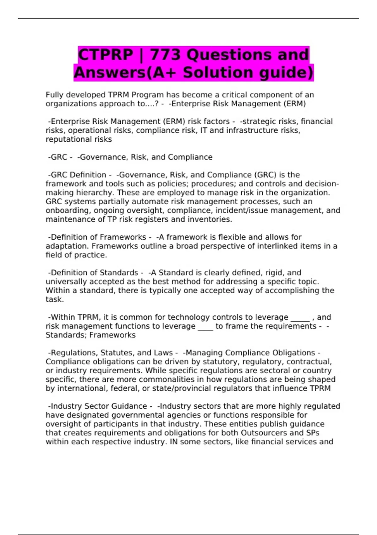 CTPRP | 773 Questions and Answers(A+ Solution guide)