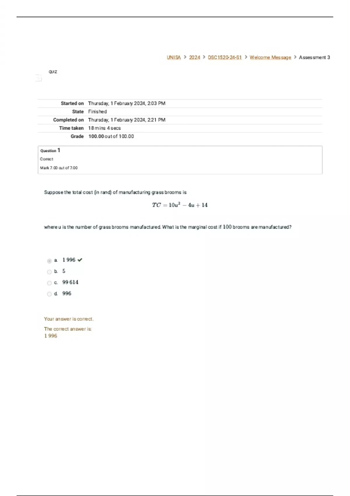 Completed on Thursday, 1 February 2024, 2:21 PM