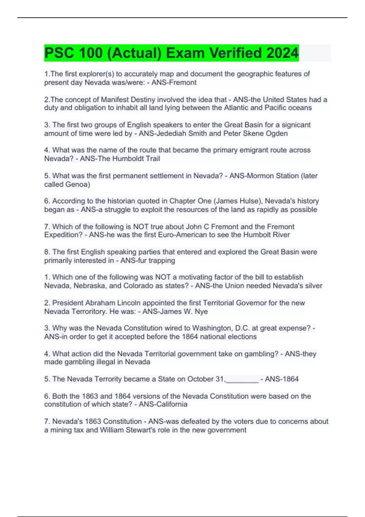 PSC 100 /UNR PSC 100 /PSc 1113-100 Exams Package Deal-Solved