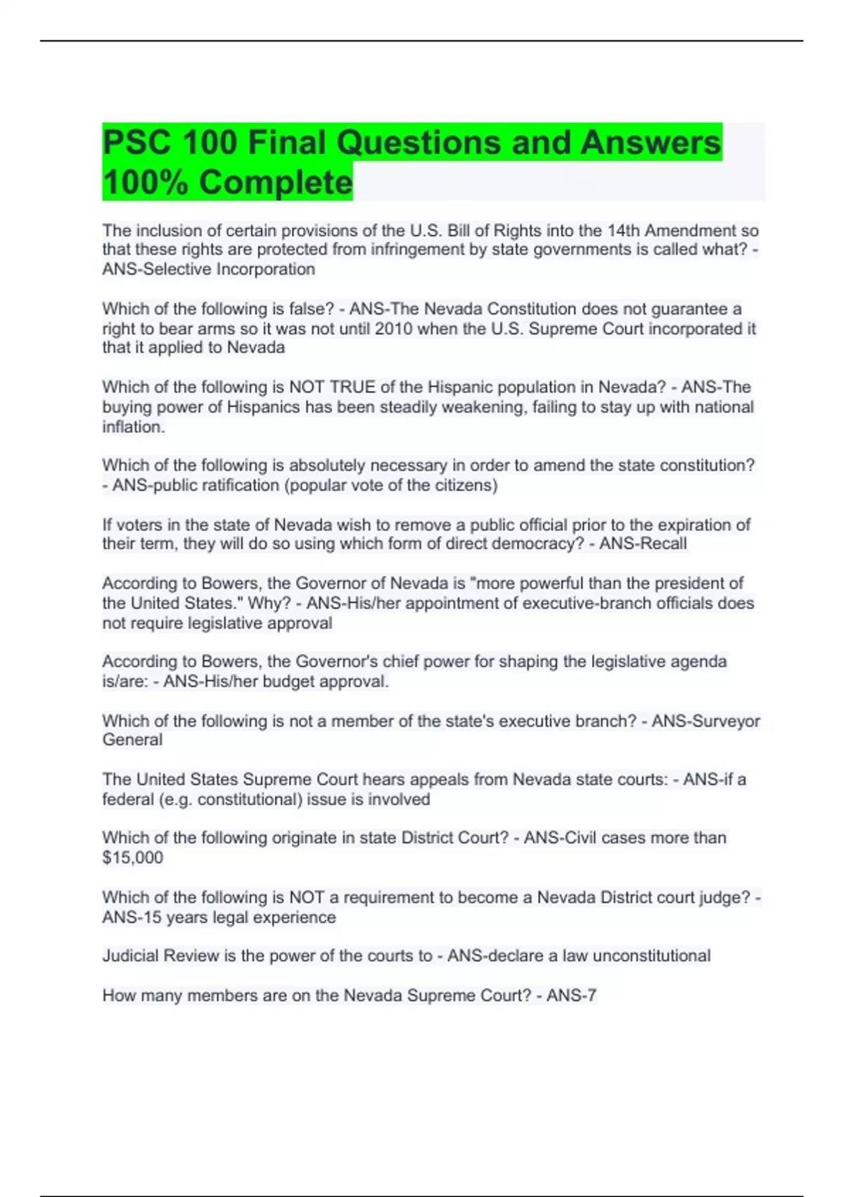 PSC 100 /UNR PSC 100 /PSc 1113-100 Exams Package Deal-Solved