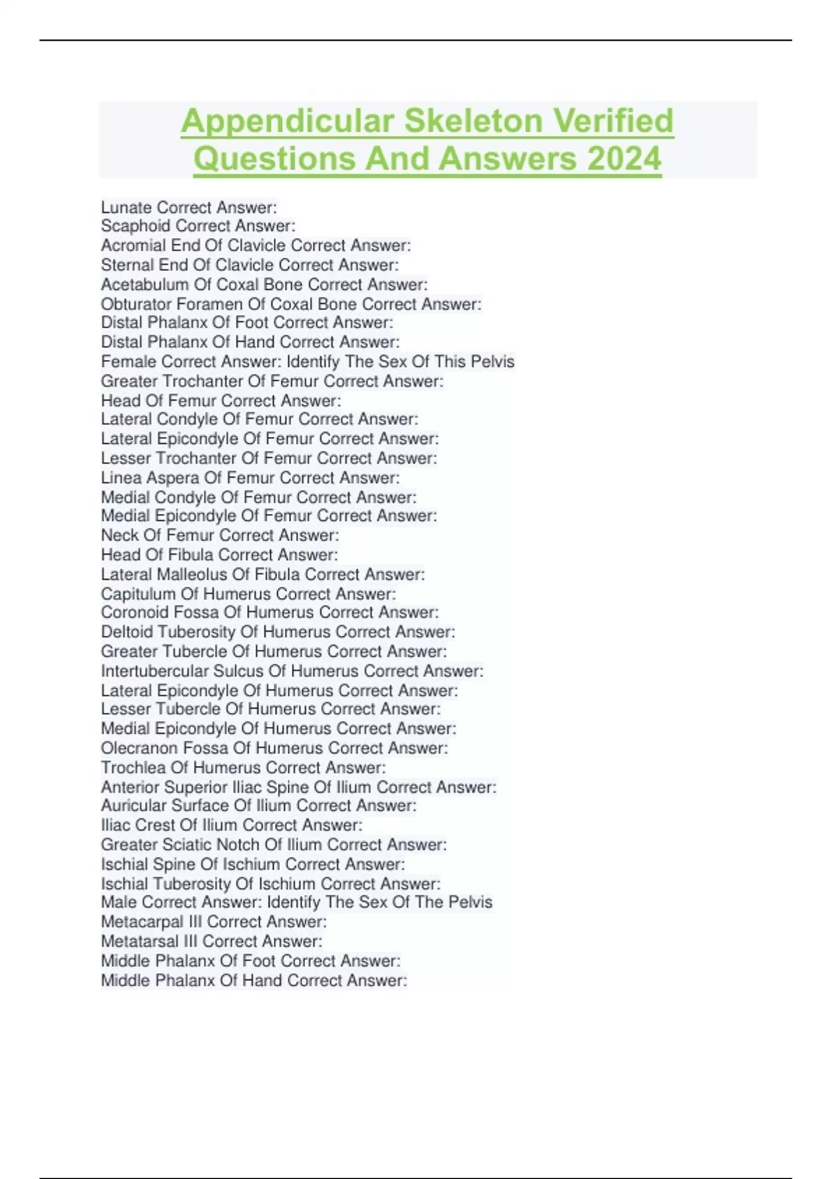 Appendicular Skeleton Verified Questions And Answers 2024 Appendicular Skeleton Verified Questions And Answers 2024