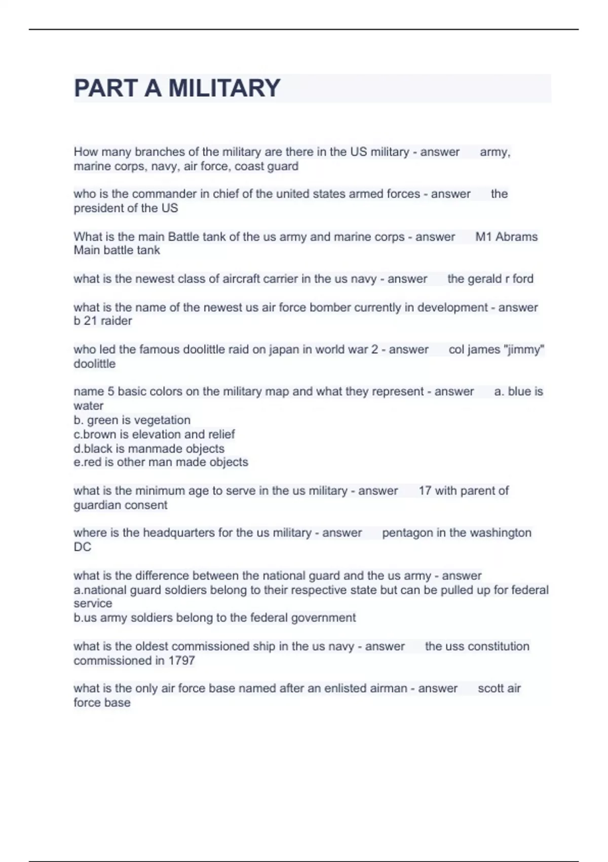 PART A MILITARY QUESTIONS AND ANSWERS 2024 SOLVED