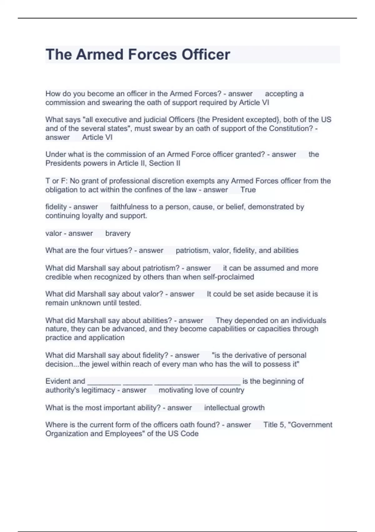 The Armed Forces Officer Questions and Answers 2024