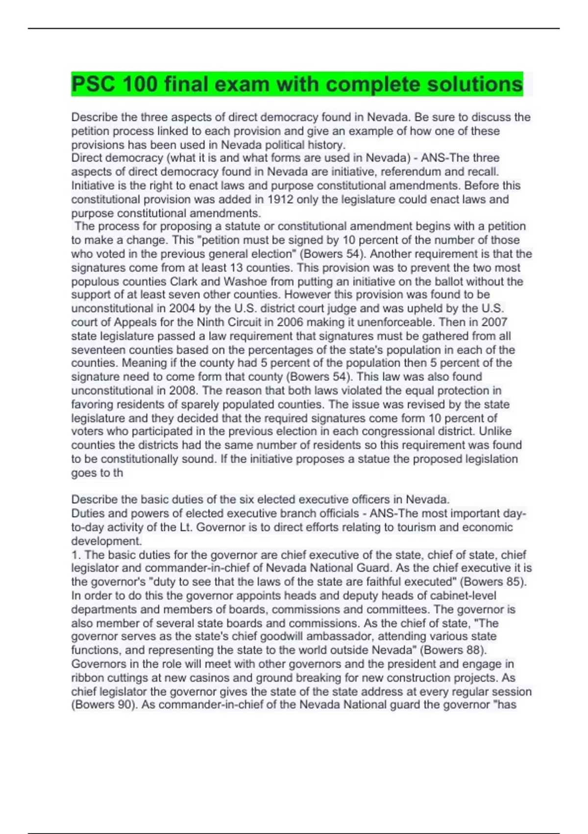 PSC 100 /UNR PSC 100 /PSc 1113-100 Exams Package Deal-Solved