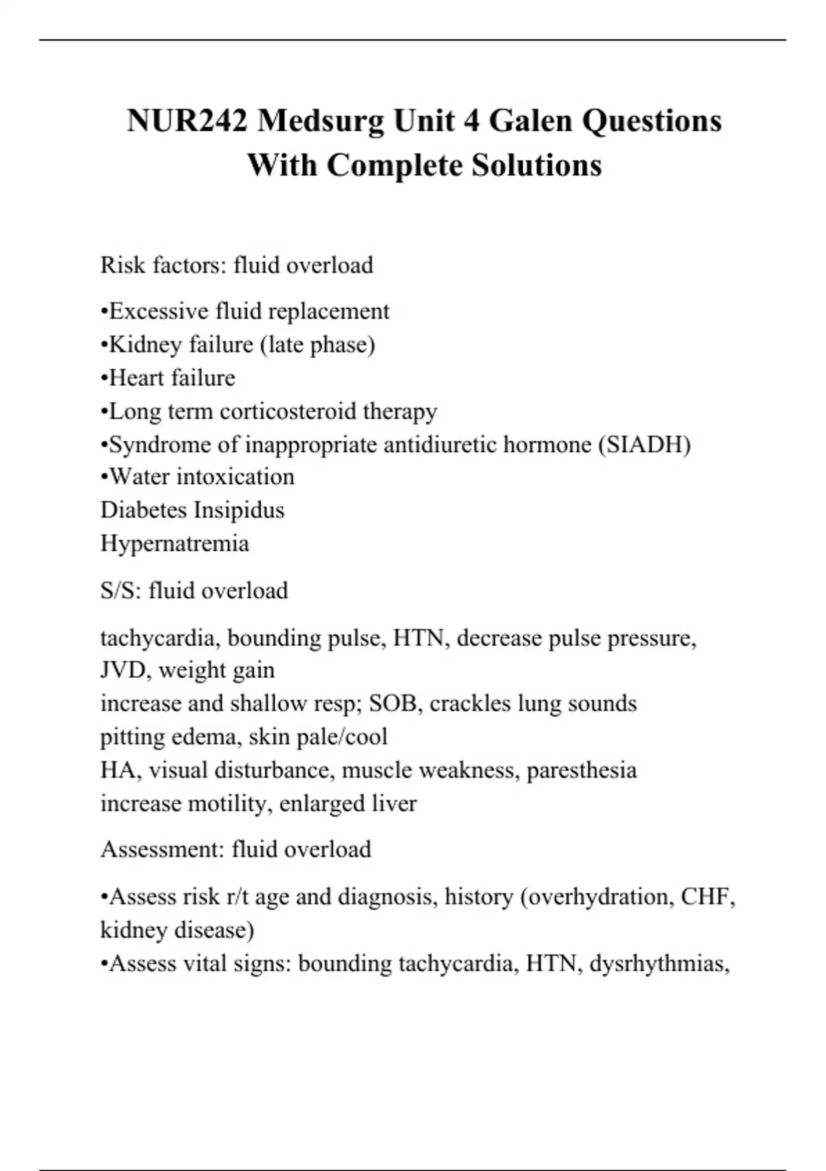 NUR242 Medsurg Unit 4 Galen Questions With Complete Solutions