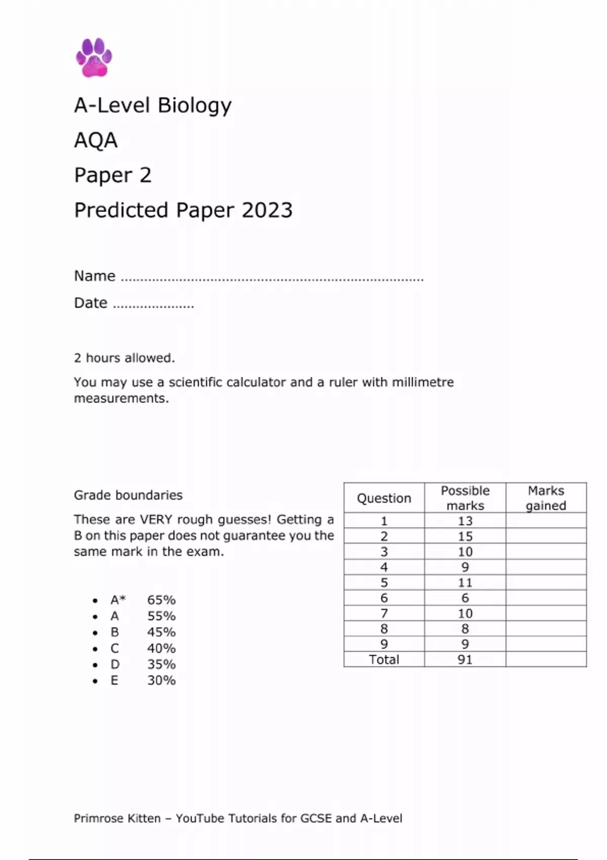 AQA A LEVEL biology paper 2 predicted paper 2023
