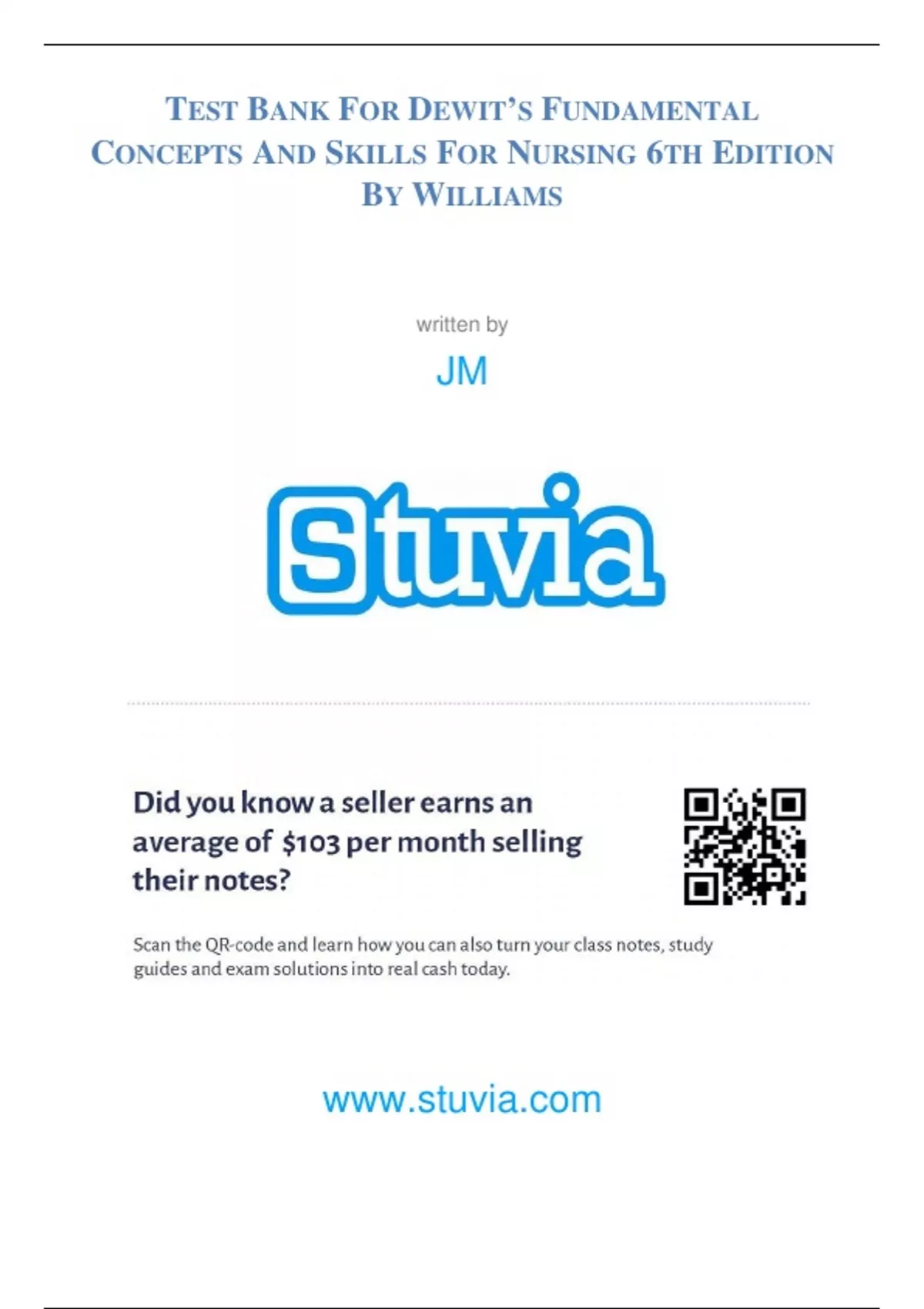 DEWIT’S FUNDAMENTAL CONCEPTS AND SKILLS FOR NURSING 6TH EDITION BY WILLIAMS TEST BANK, ALL CHAPTERS