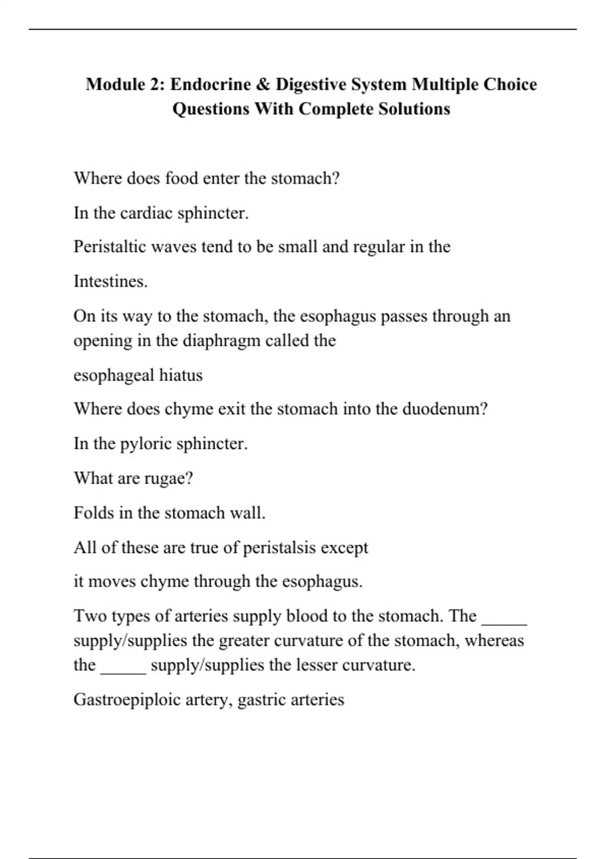 Module 2: Endocrine & Digestive System Multiple Choice Questions With Complete Solutions