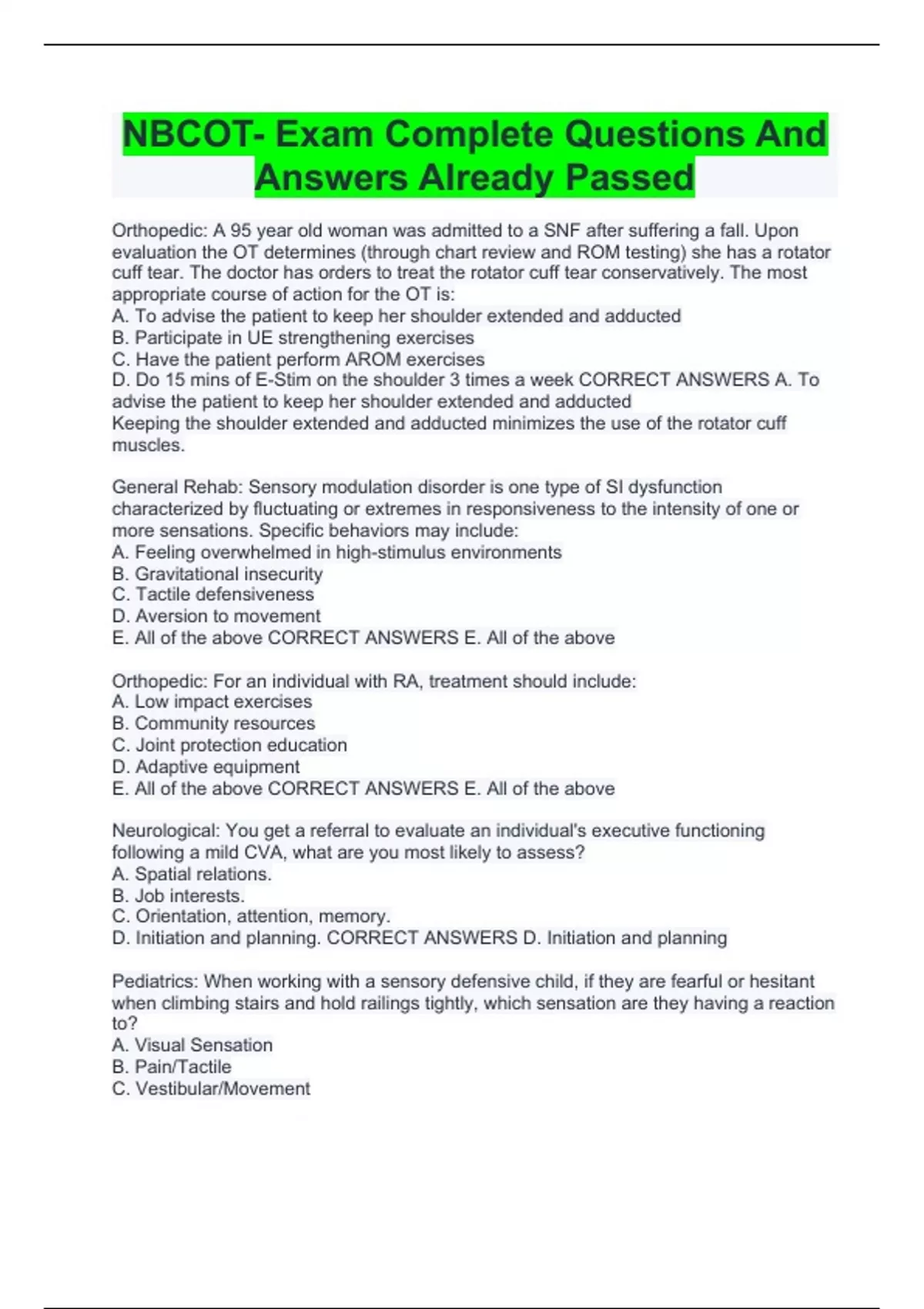 NBCOT- Exam Complete Questions And Answers Already Passed