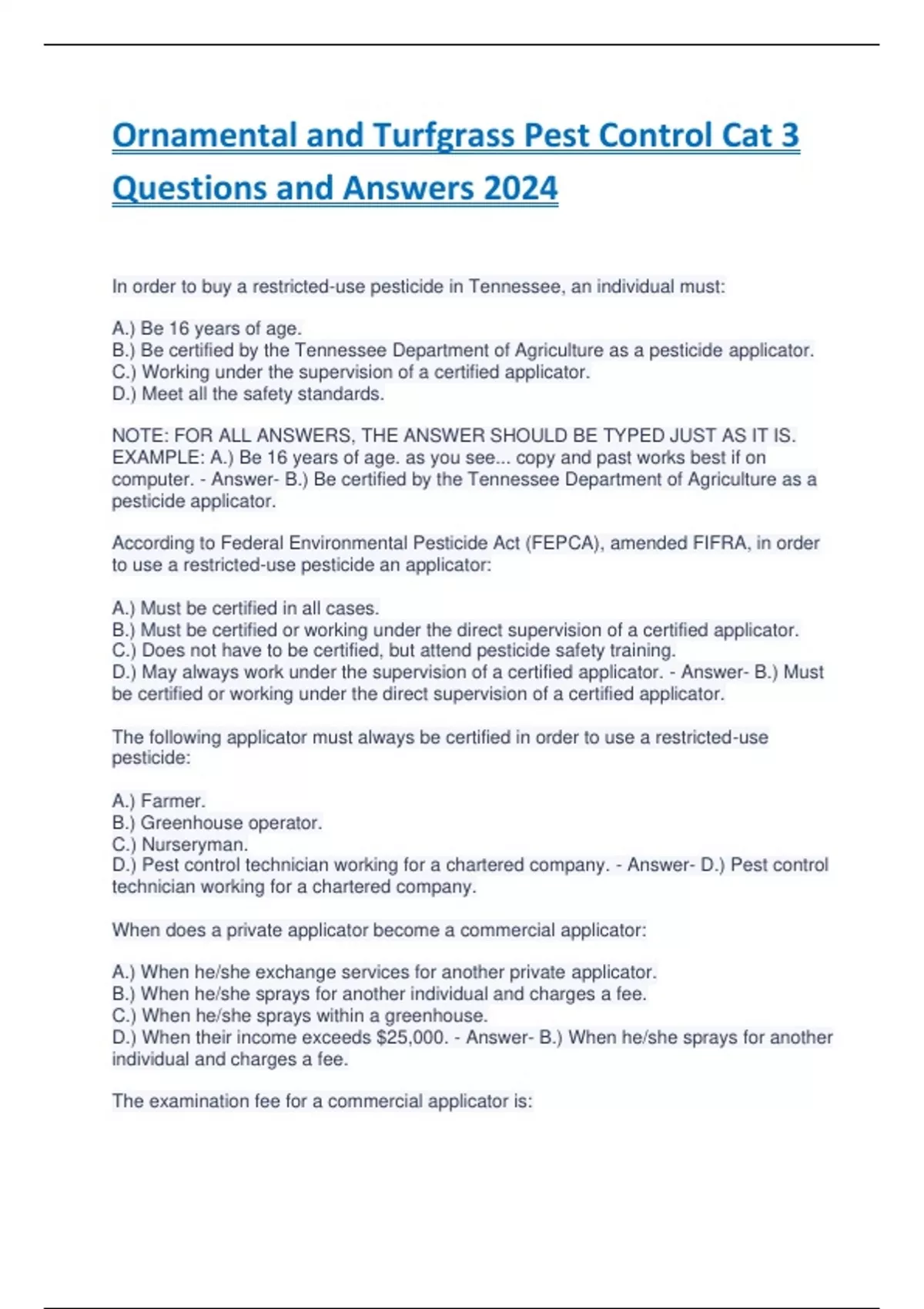 Ornamental and Turfgrass Pest Control Cat 3 Questions and Answers 2024.