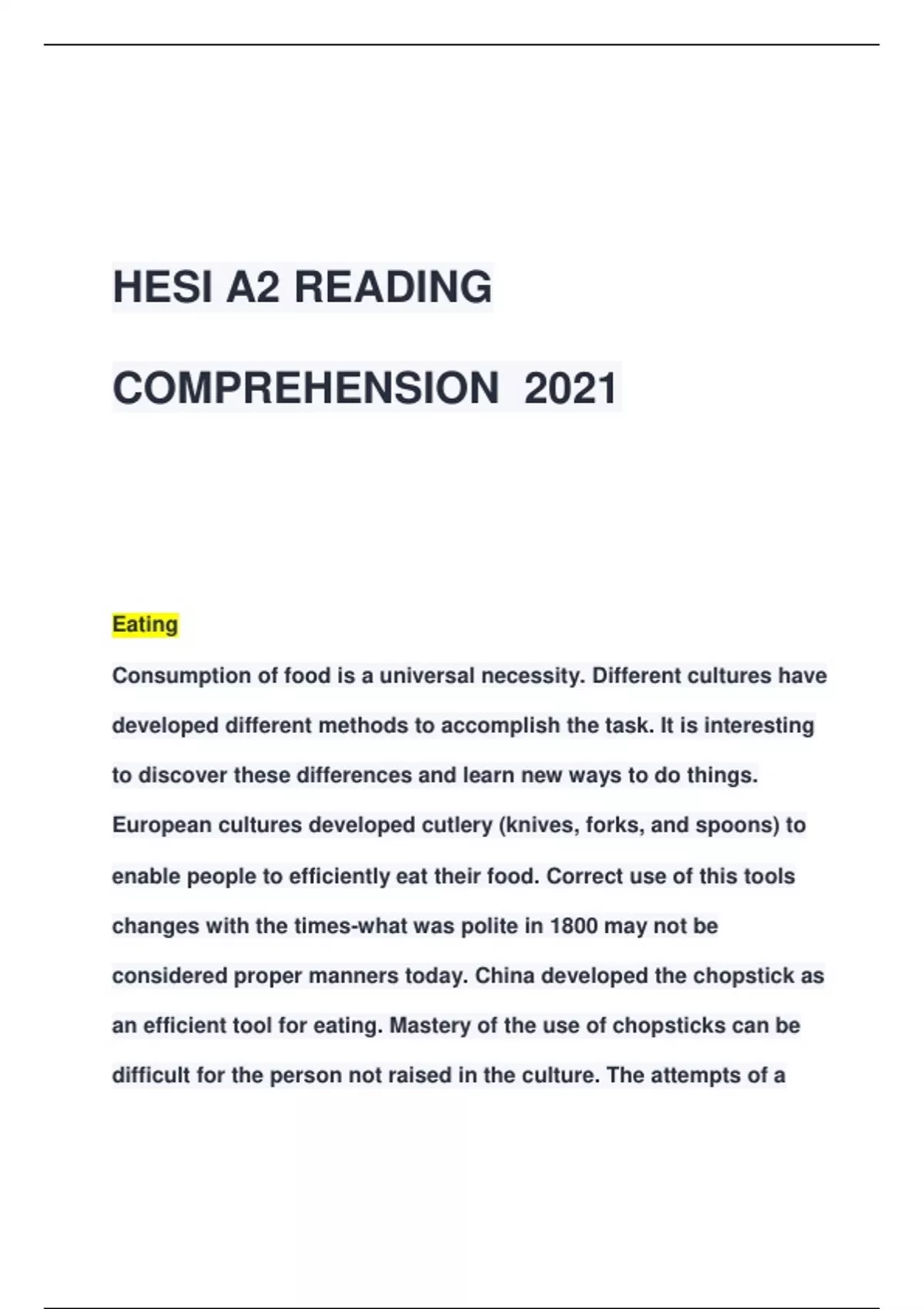 - HESI A2 READING COMPREHENSION 2021