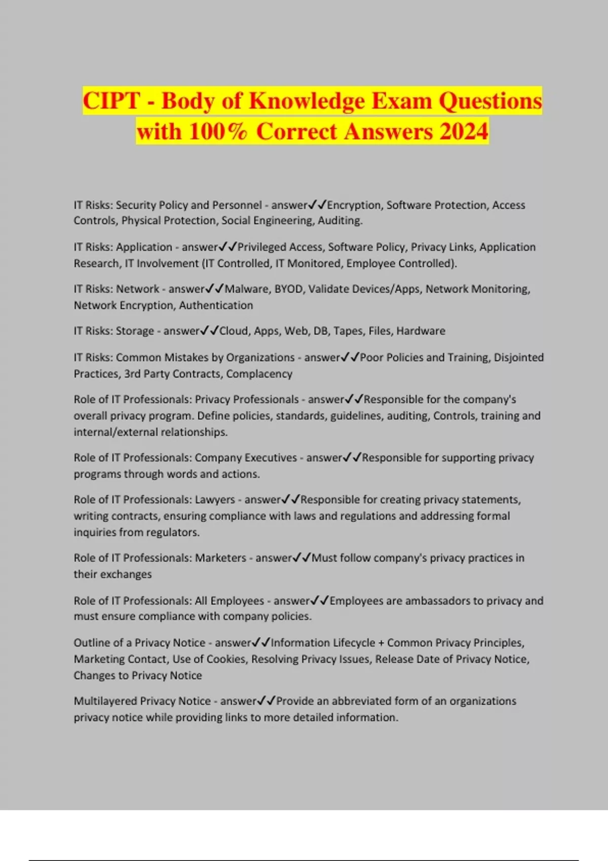 CIPT - Body of Knowledge Exam Questions with 100% Correct Answers 2024
