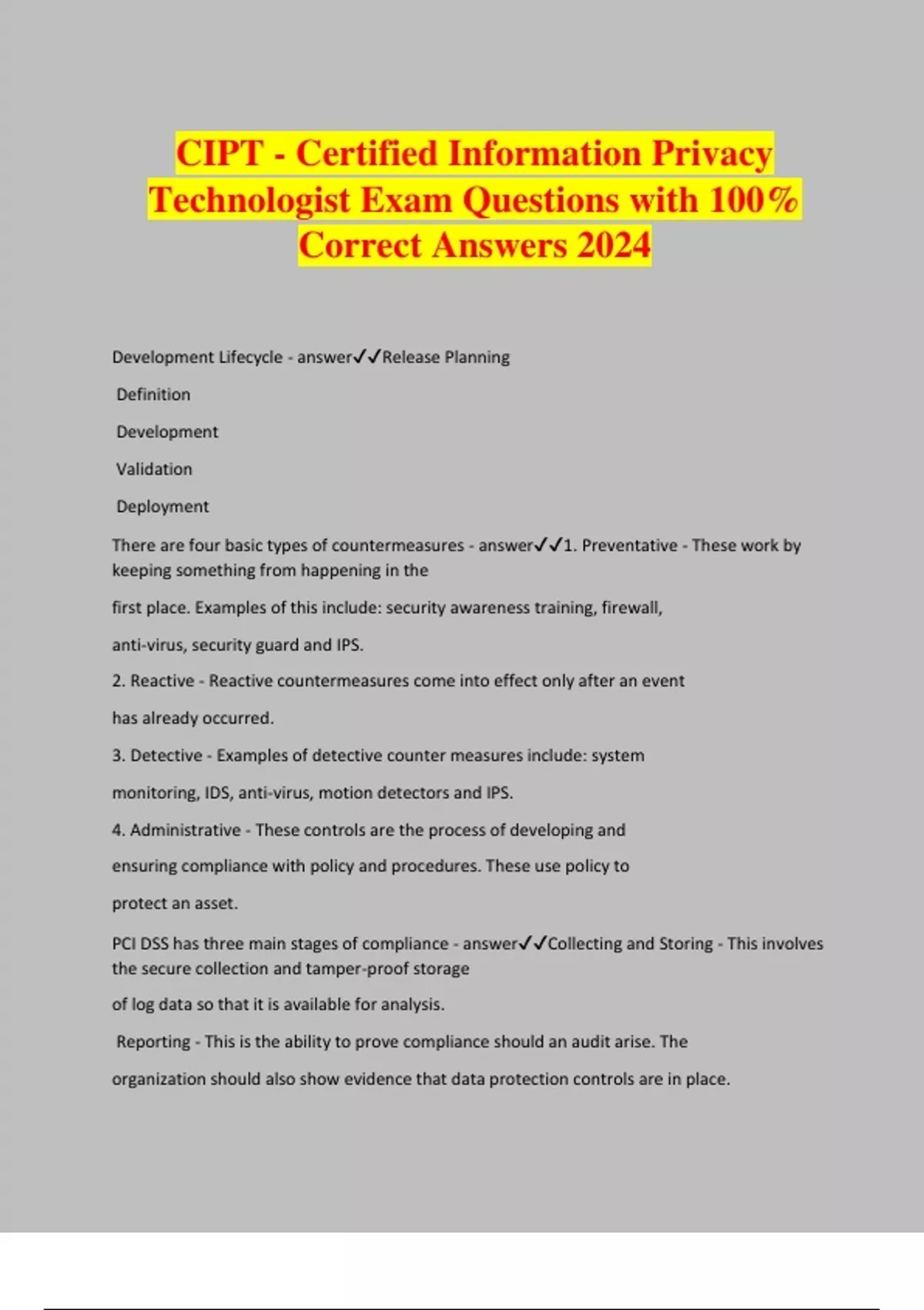 CIPT - Certified Information Privacy Technologist Exam Questions with 100% Correct Answers 2024