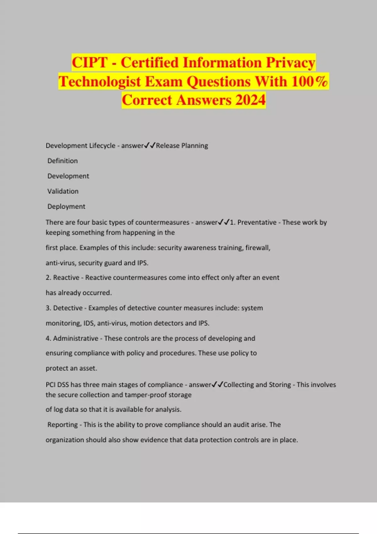 CIPT - Certified Information Privacy Technologist Exam Questions With 100% Correct Answers 2024