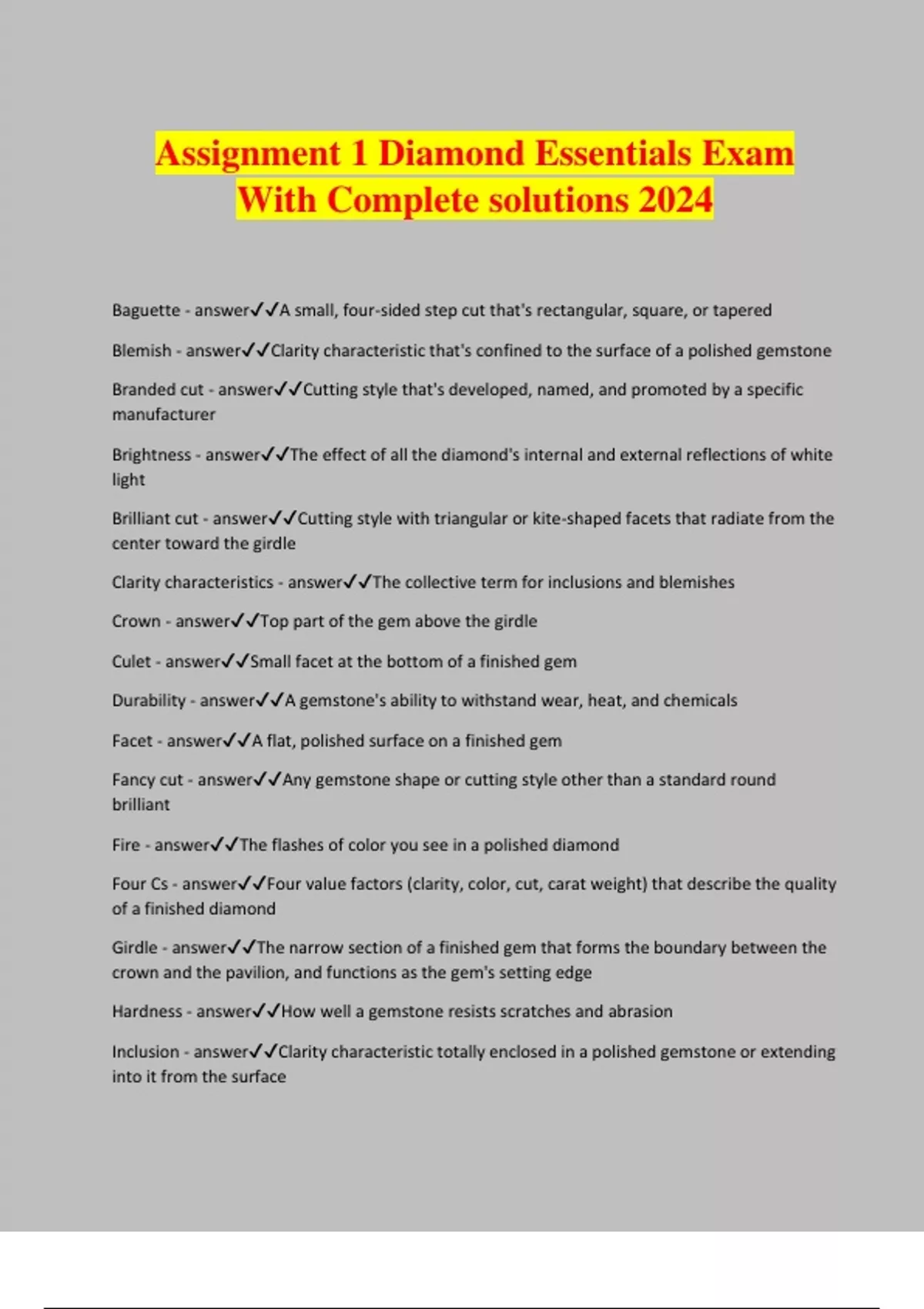 Assignment 1 Diamond Essentials Exam With Complete solutions 2024