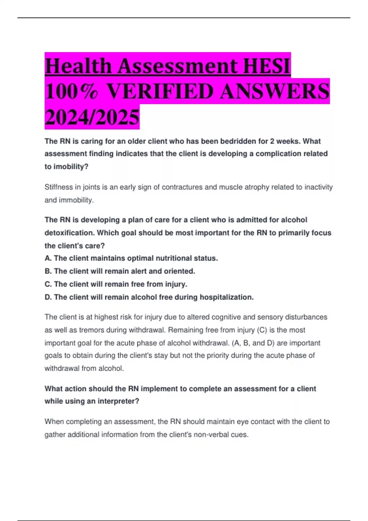 Health Assessment HESI 100% VERIFIED ANSWERS 2024/2025