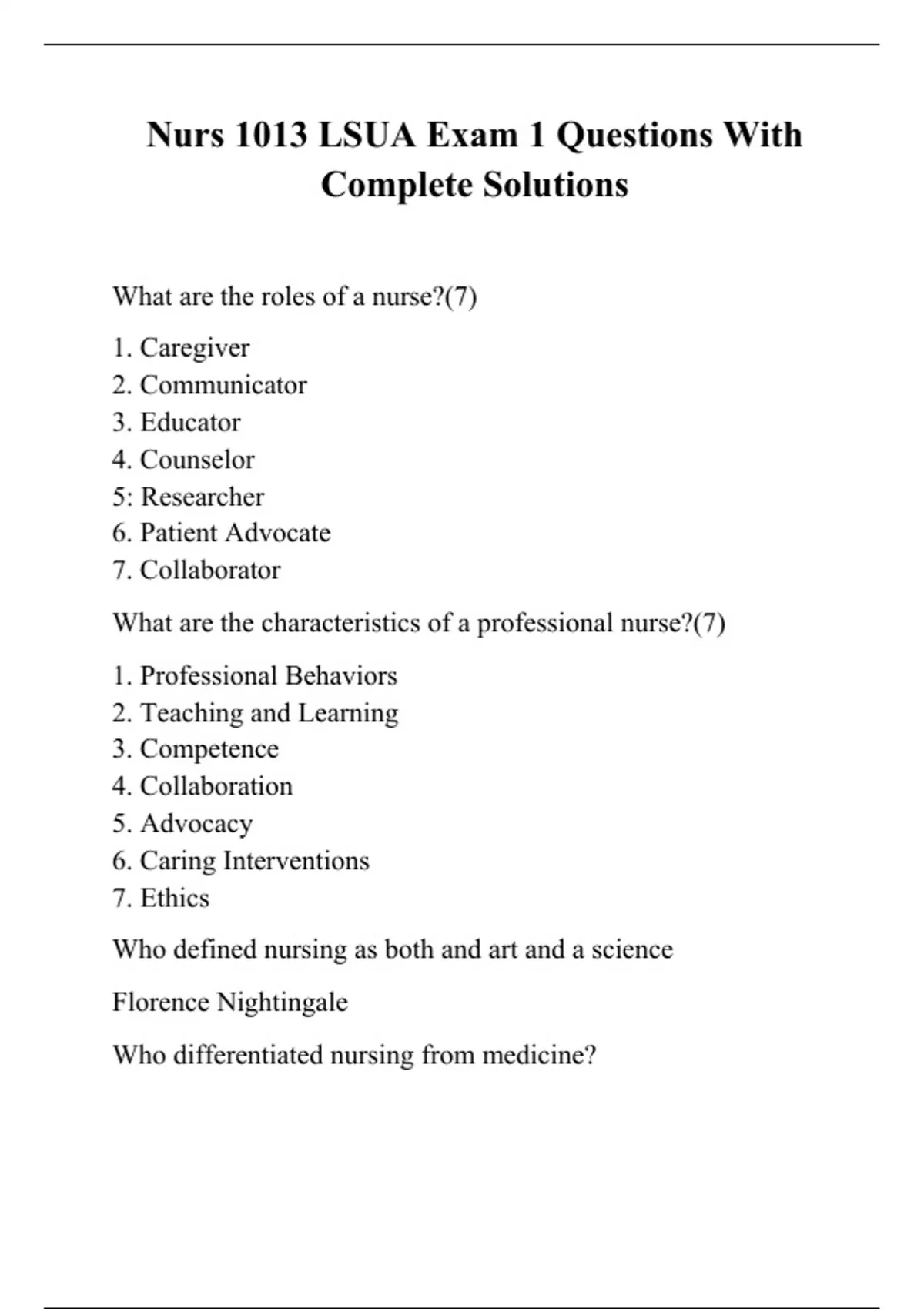 Nurs 1013 LSUA Exam 1 Questions With Complete Solutions
