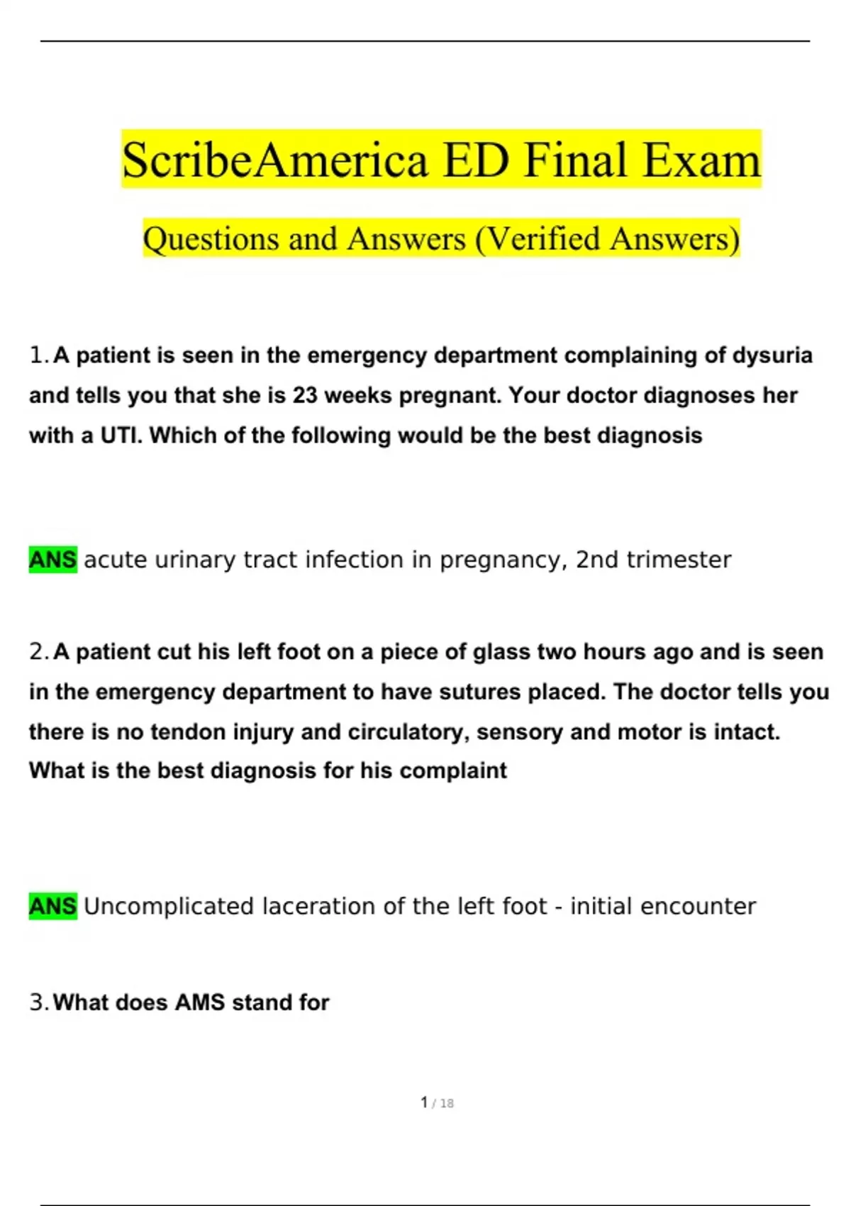 ScribeAmerica ED Final Exam Questions and Answers 2024 / 2025 | 100% Verified Answers