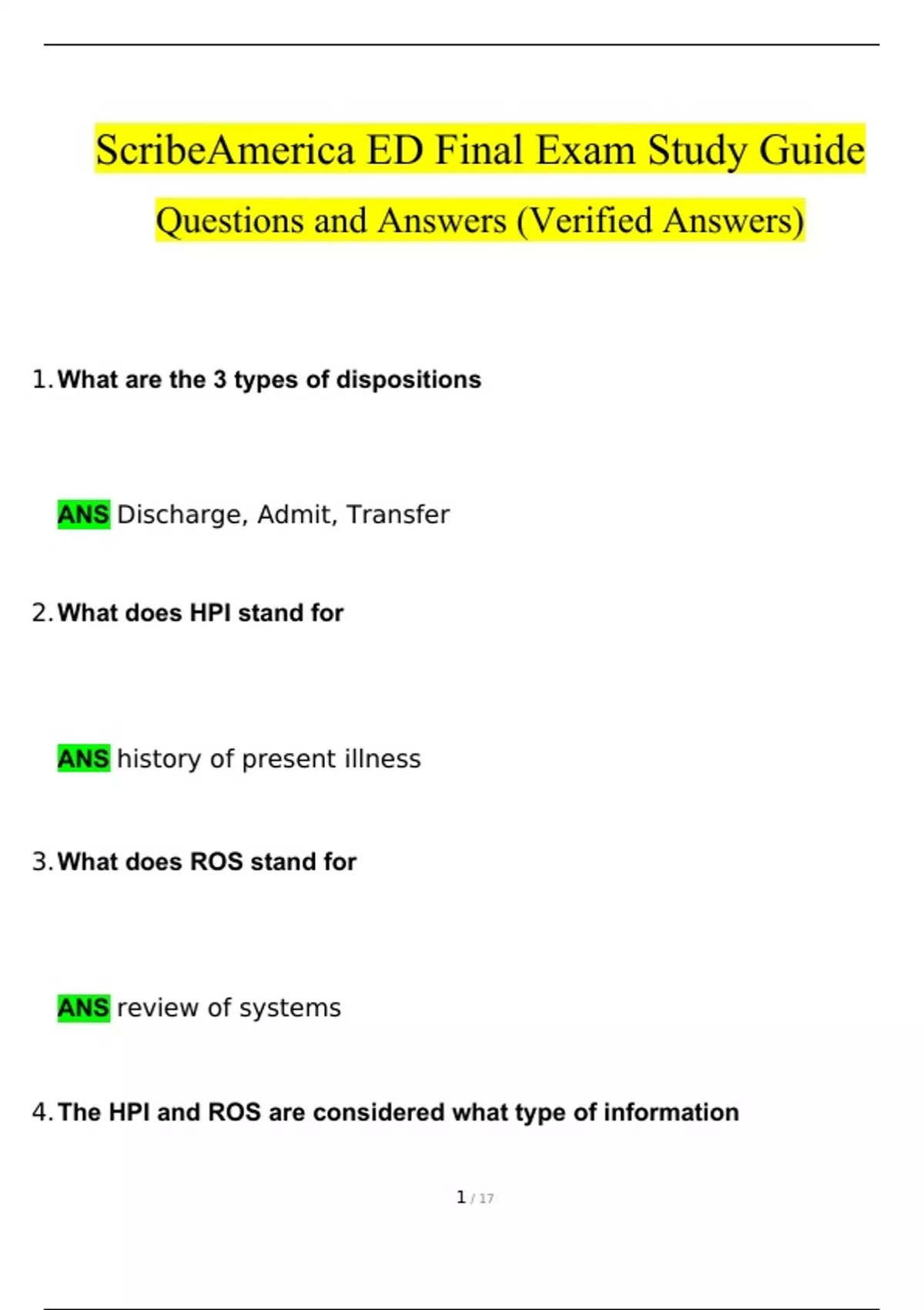 ScribeAmerica ED Final Exam Study Guide Questions and Answers 2024 / 2025 | 100% Verified Answers