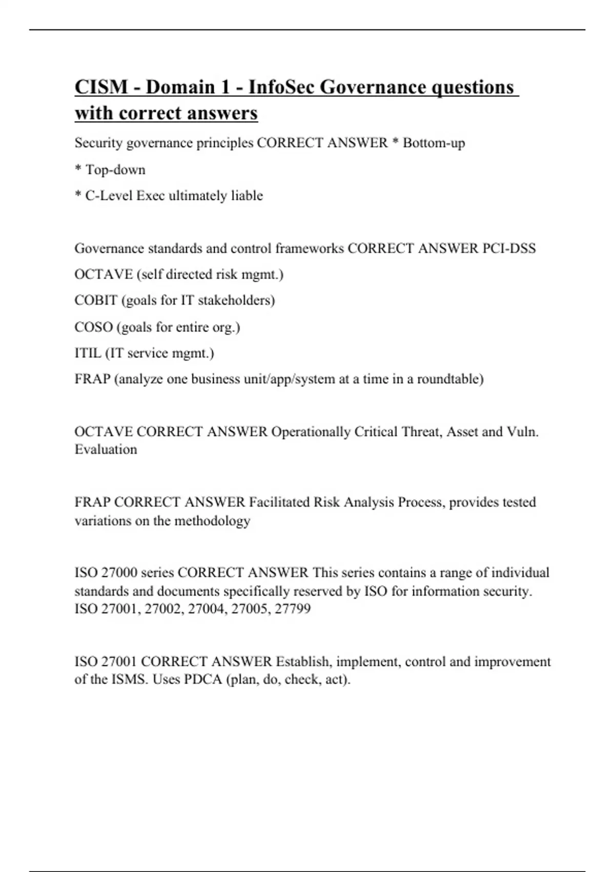 CISM - Domain 1 - InfoSec Governance questions with correct answers