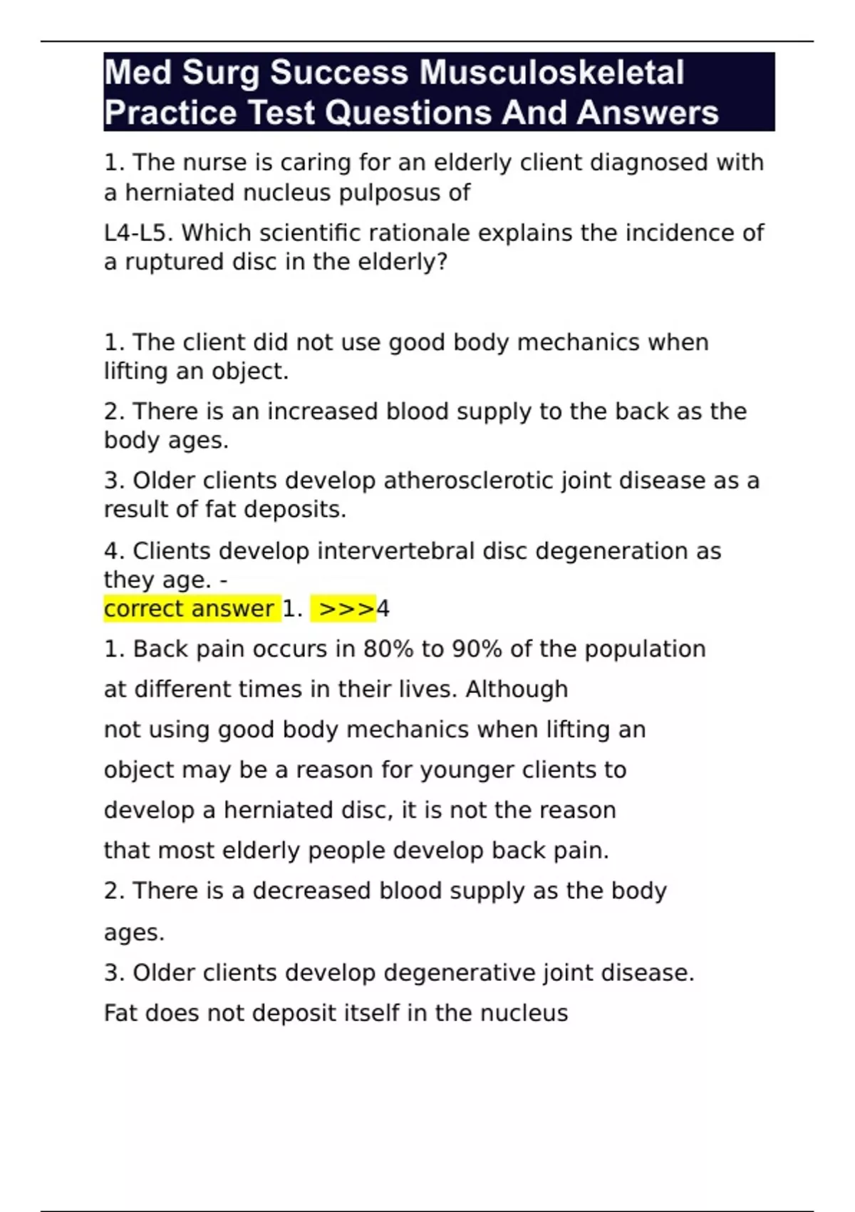Med Surg Success Musculoskeletal Practice Test Questions And Answers