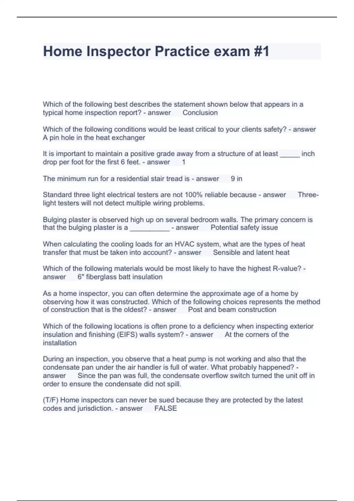 Home Inspector Practice exam #1 Questions and Answers Fully solved