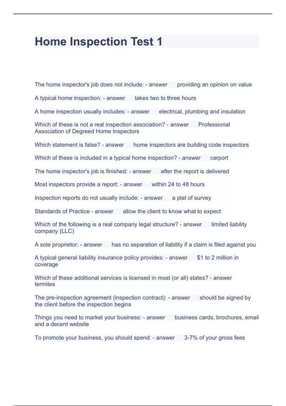Home Inspection Test 1