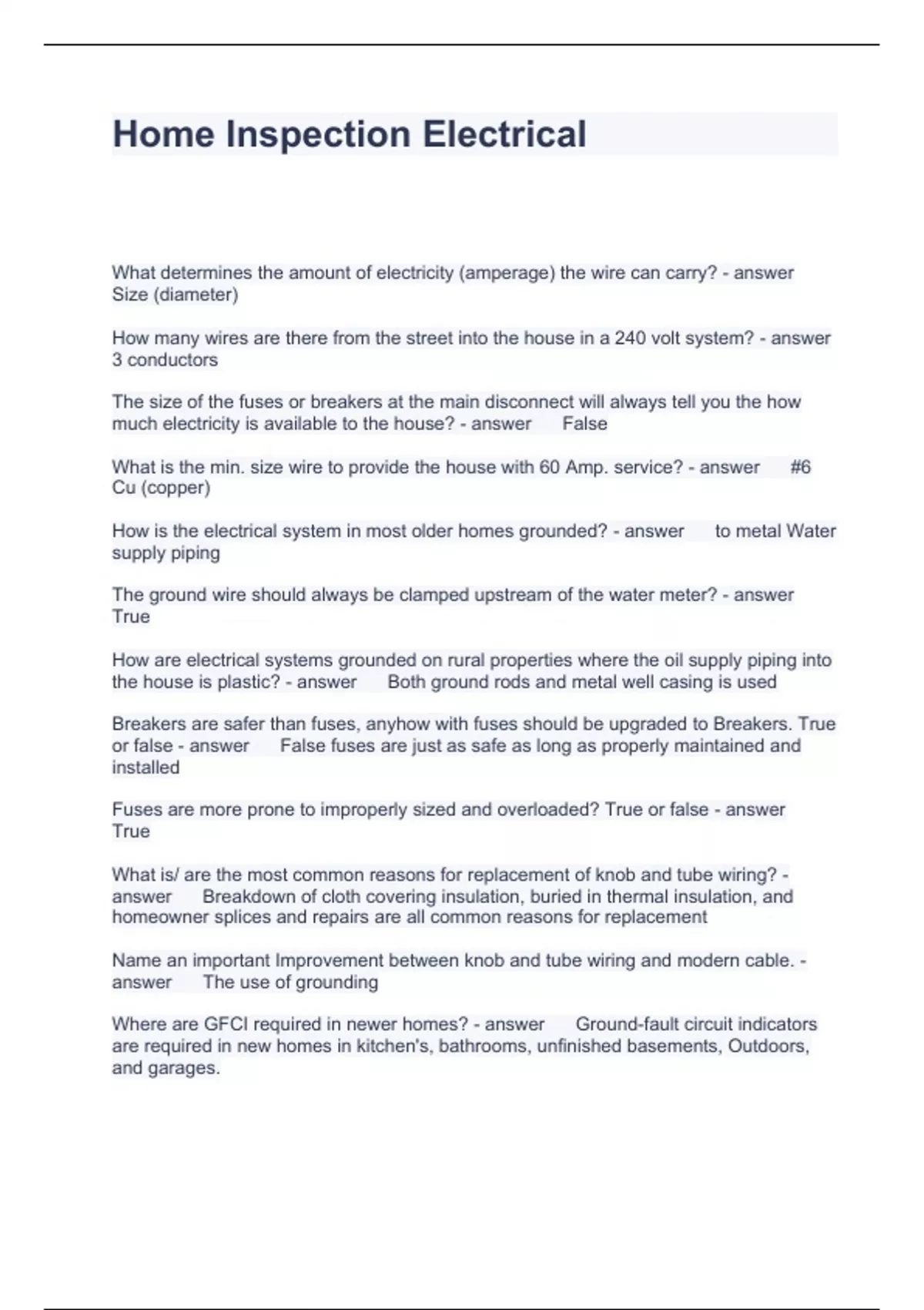 Home Inspection Electrical Questions and Answers Graded A