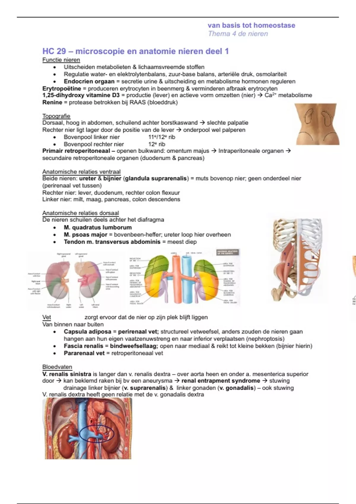 • Fascia renalis = bindweefsellaag; open naar mediaal & reikt tot kleine bekken (bijnier hierin)