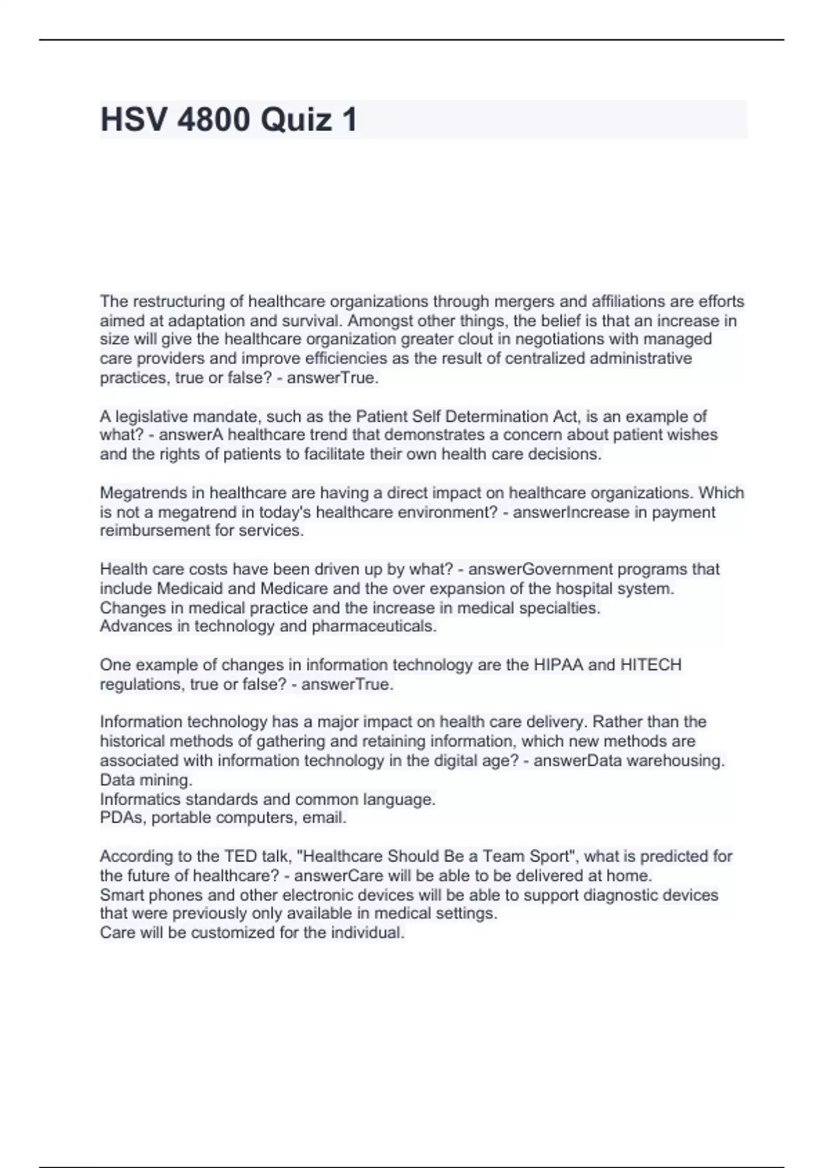 Exam of 3 pages for the course HSV 4800 at HSV 4800 (HSV 4800 Quiz 1)