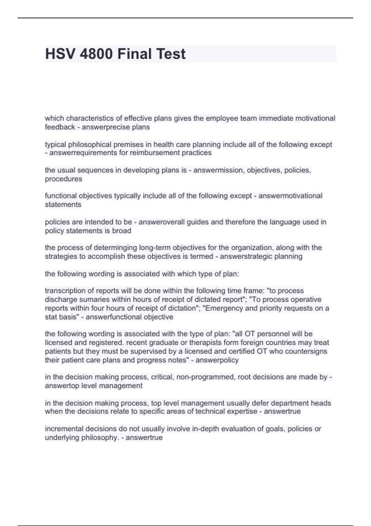 Exam of 15 pages for the course HSV 4800 at HSV 4800 (HSV 4800 Final Test)