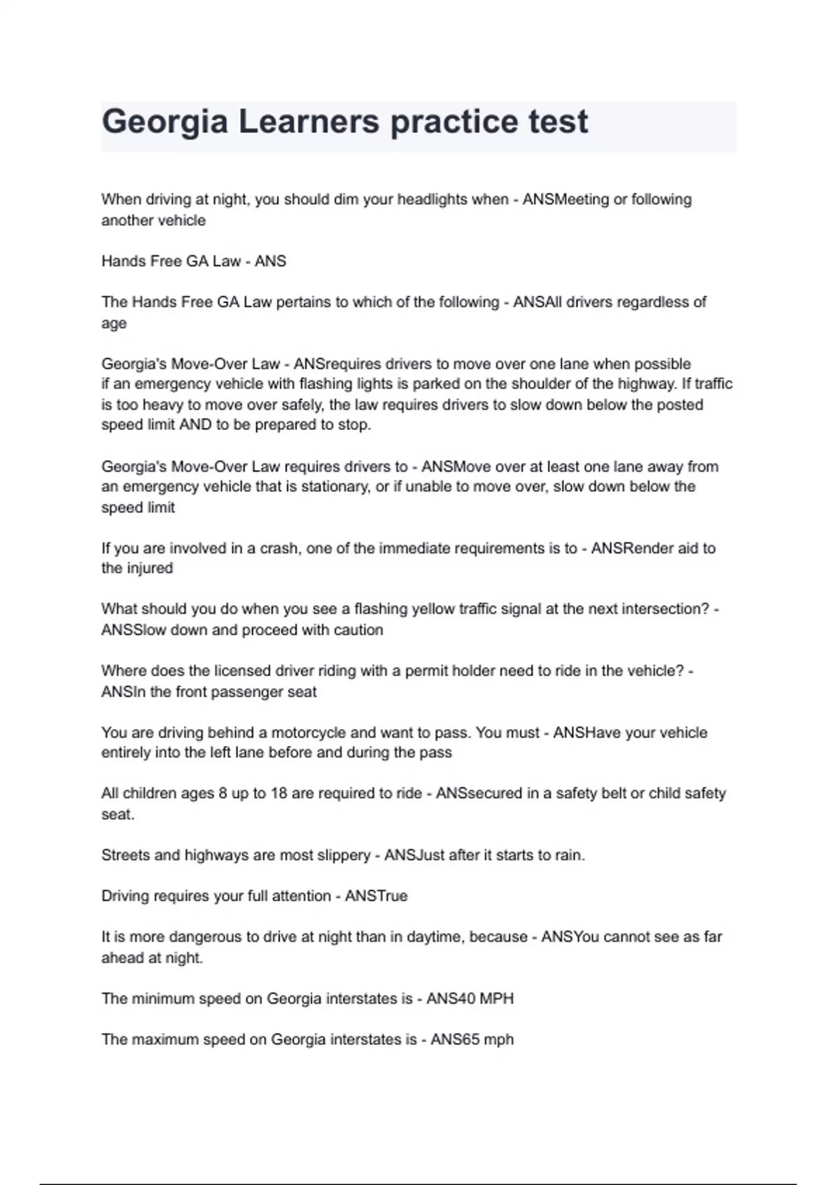 Georgia Learners practice test 2024/2025 A+ score assured (100% verified)