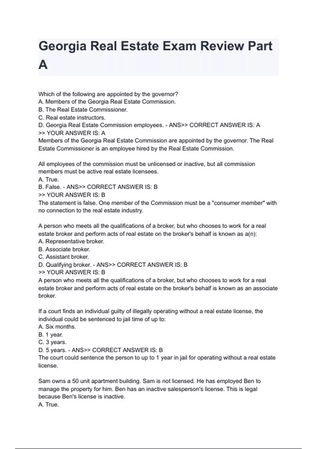 Georgia Real Estate Exam Review Part A 2024/2025 A+ score assured(100%verified)