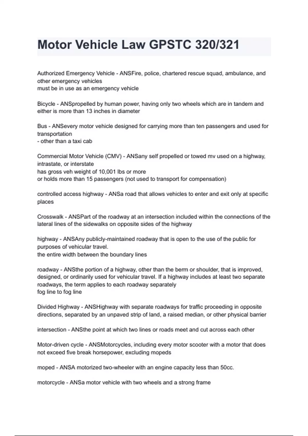 Motor Vehicle Law GPSTC 320/321 A+ score assured (100% verified)