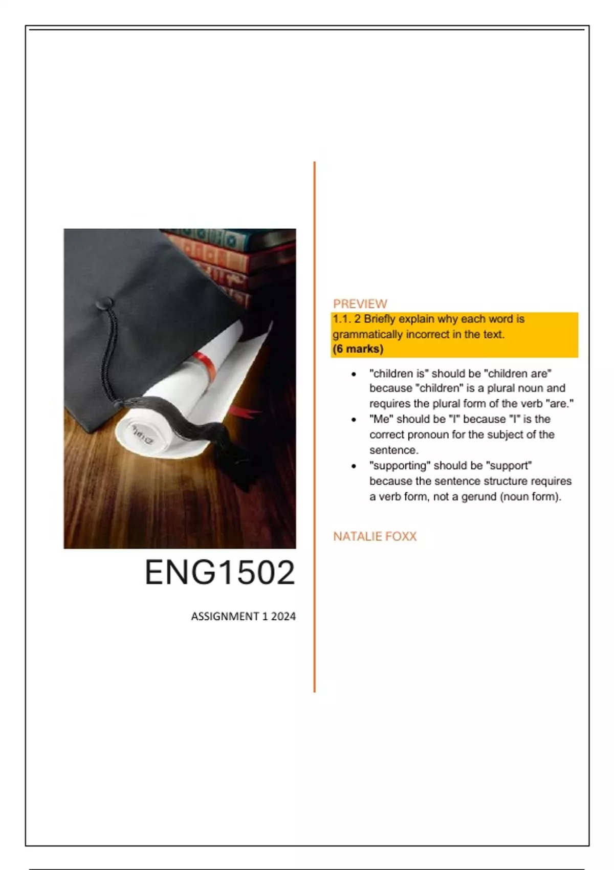 1.1.1 Identify three words that make the above text grammatically incorrect.