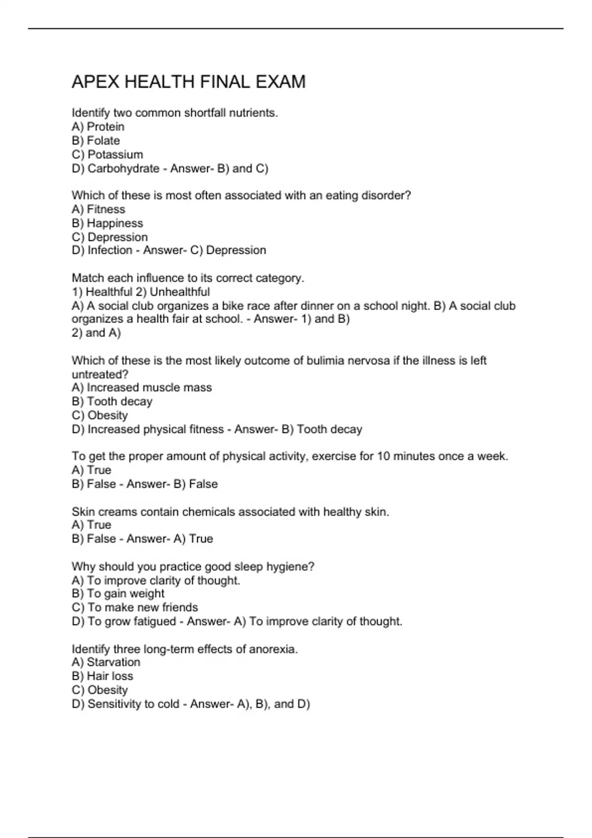 APEX HEALTH FINAL EXAM